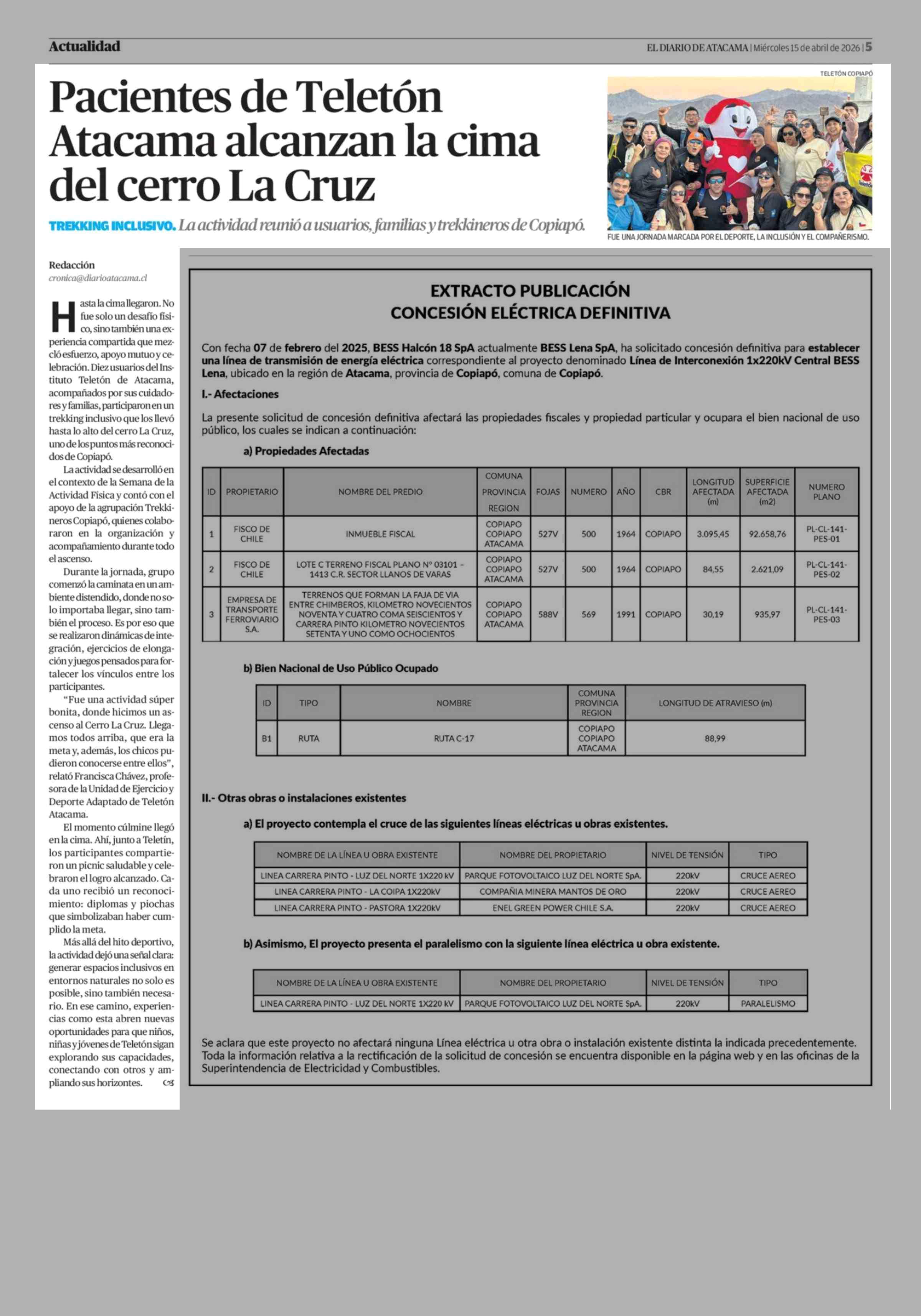 | Fecha: | 15-04-2026 | Sector: | Noticia general | Región: | Región de Atacama |