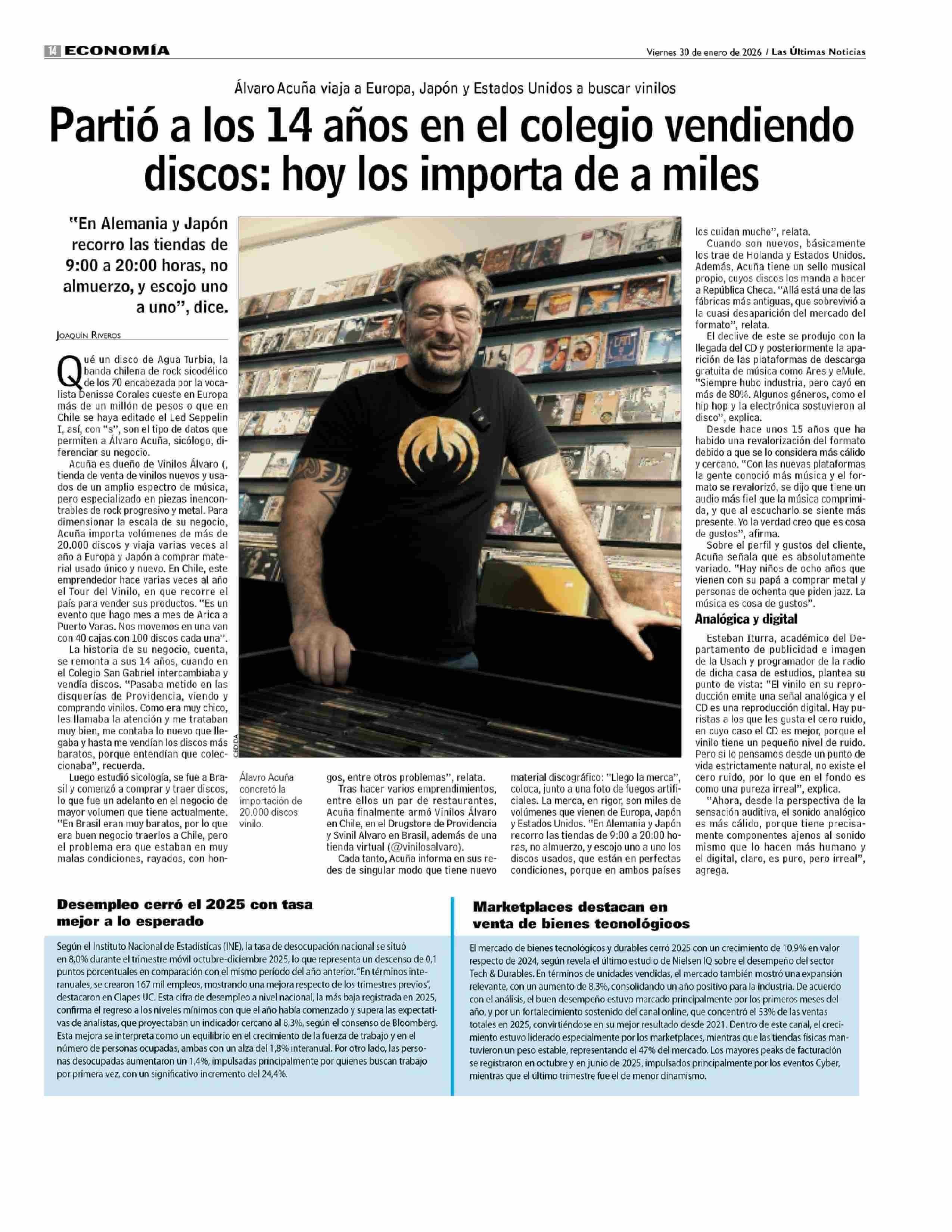 Partió a los 14 años en el colegio vendiendo discos: hoy los importa de a miles 30-01-2026 Las Últimas Noticias |