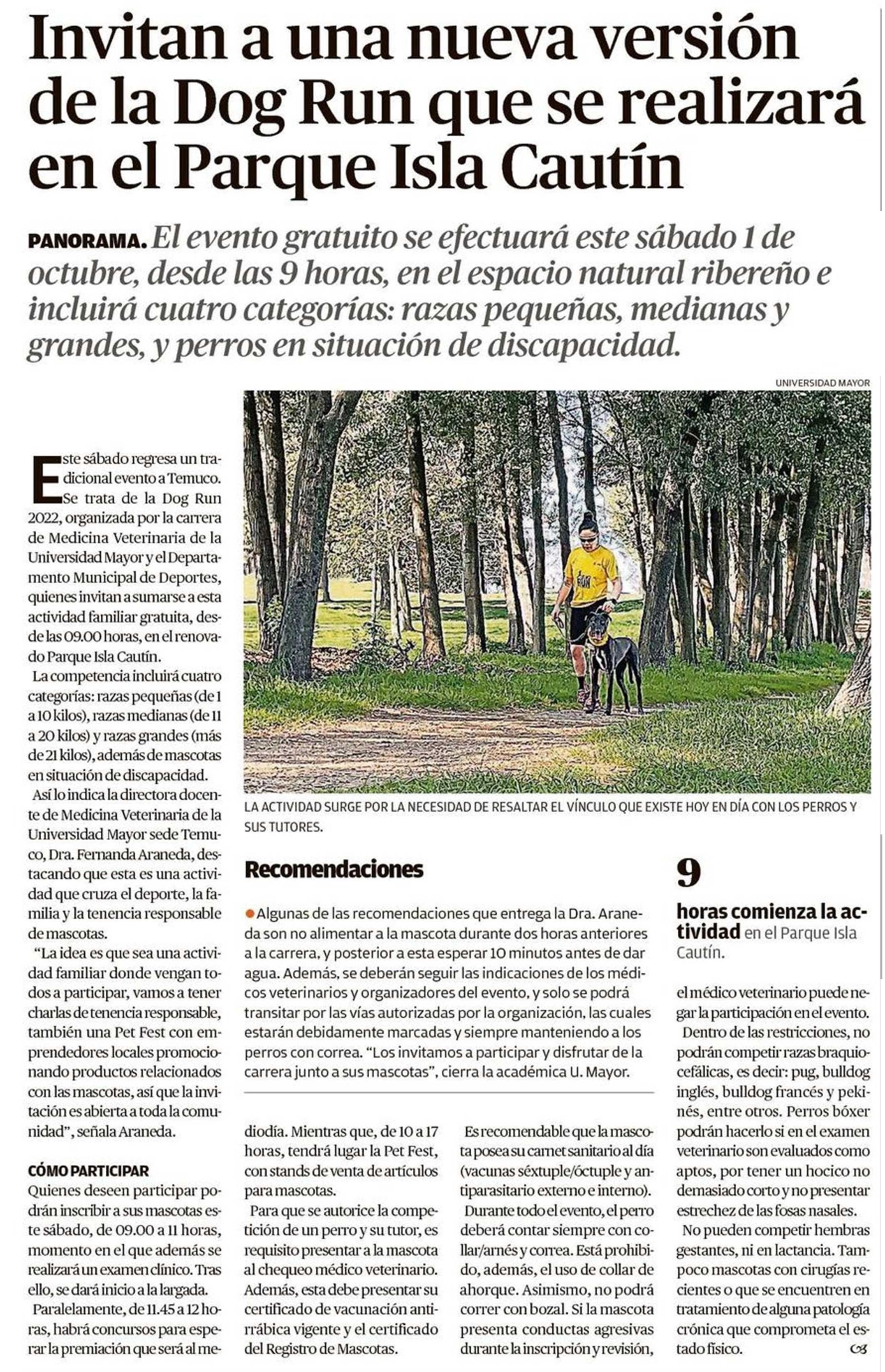 | Título: | Invitan a una nueva versión de la Dog Run que se realizará en el Parque Isla Cautín |