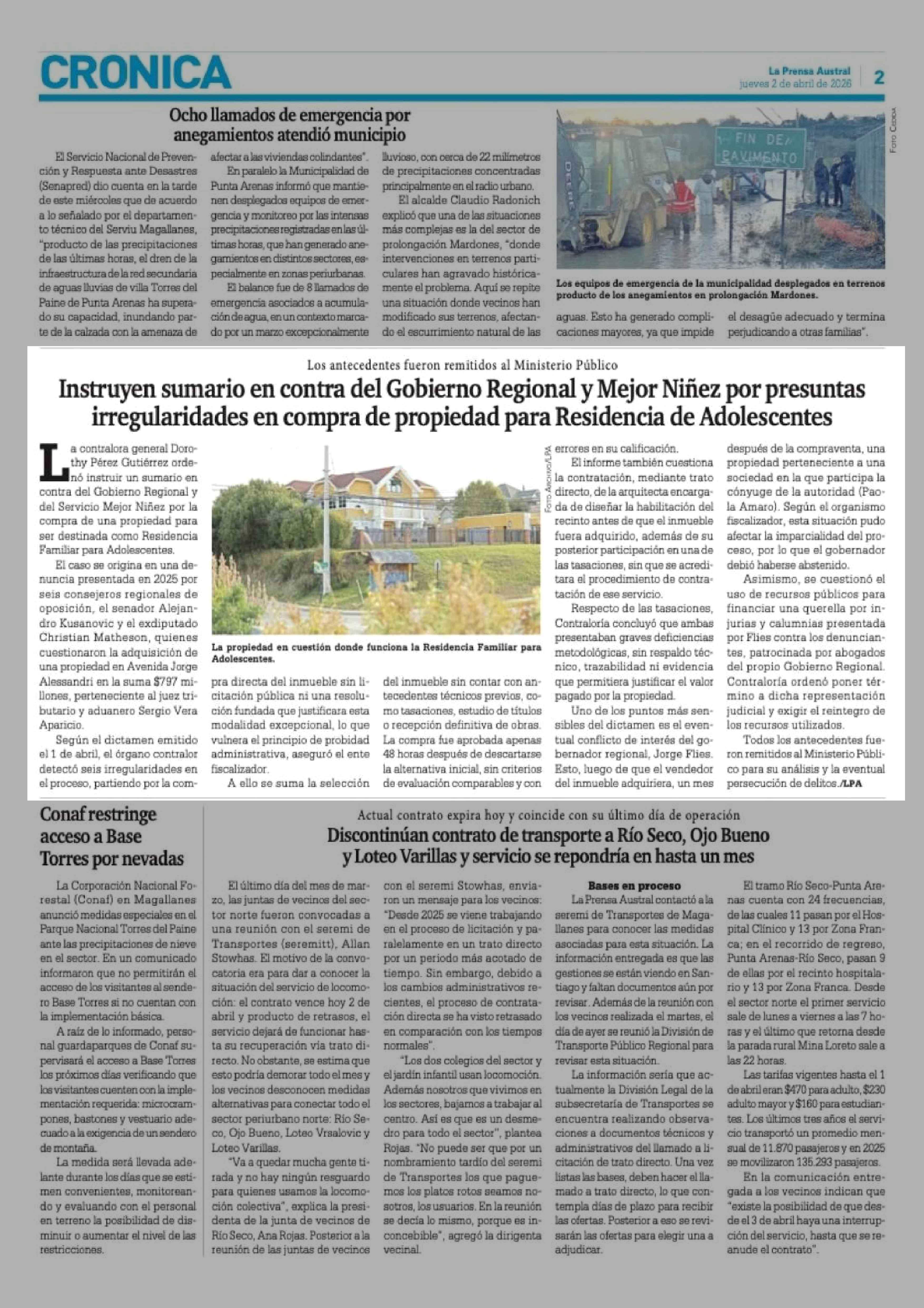 Fecha: 02-04-2026 Sector: Noticia general Región: Región de Magallanes y de la Antártica Chilena