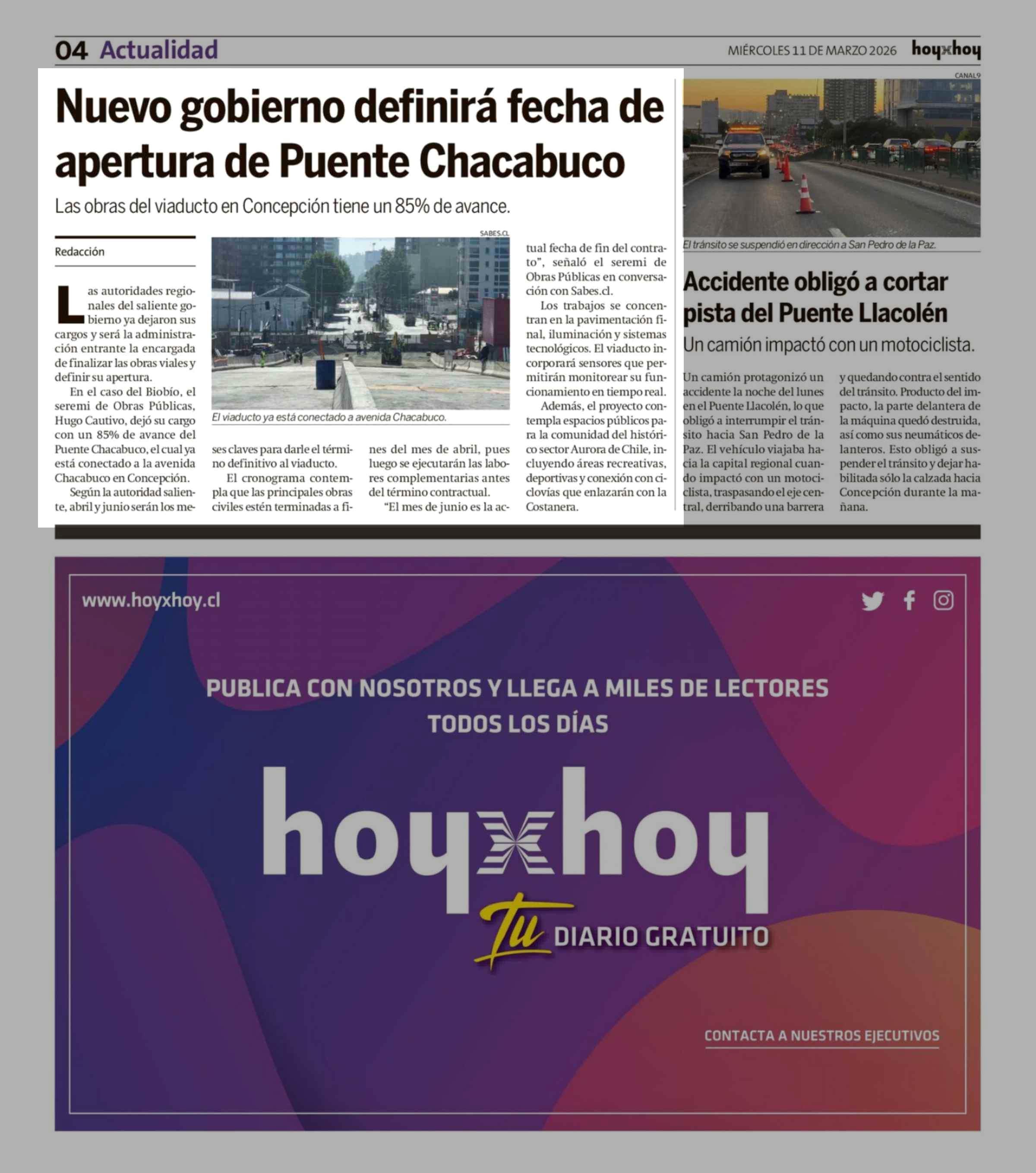 Nuevo gobierno definirá fecha de apertura de Puente Chacabuco 11-03-2026 Hoy x Hoy Concepción |