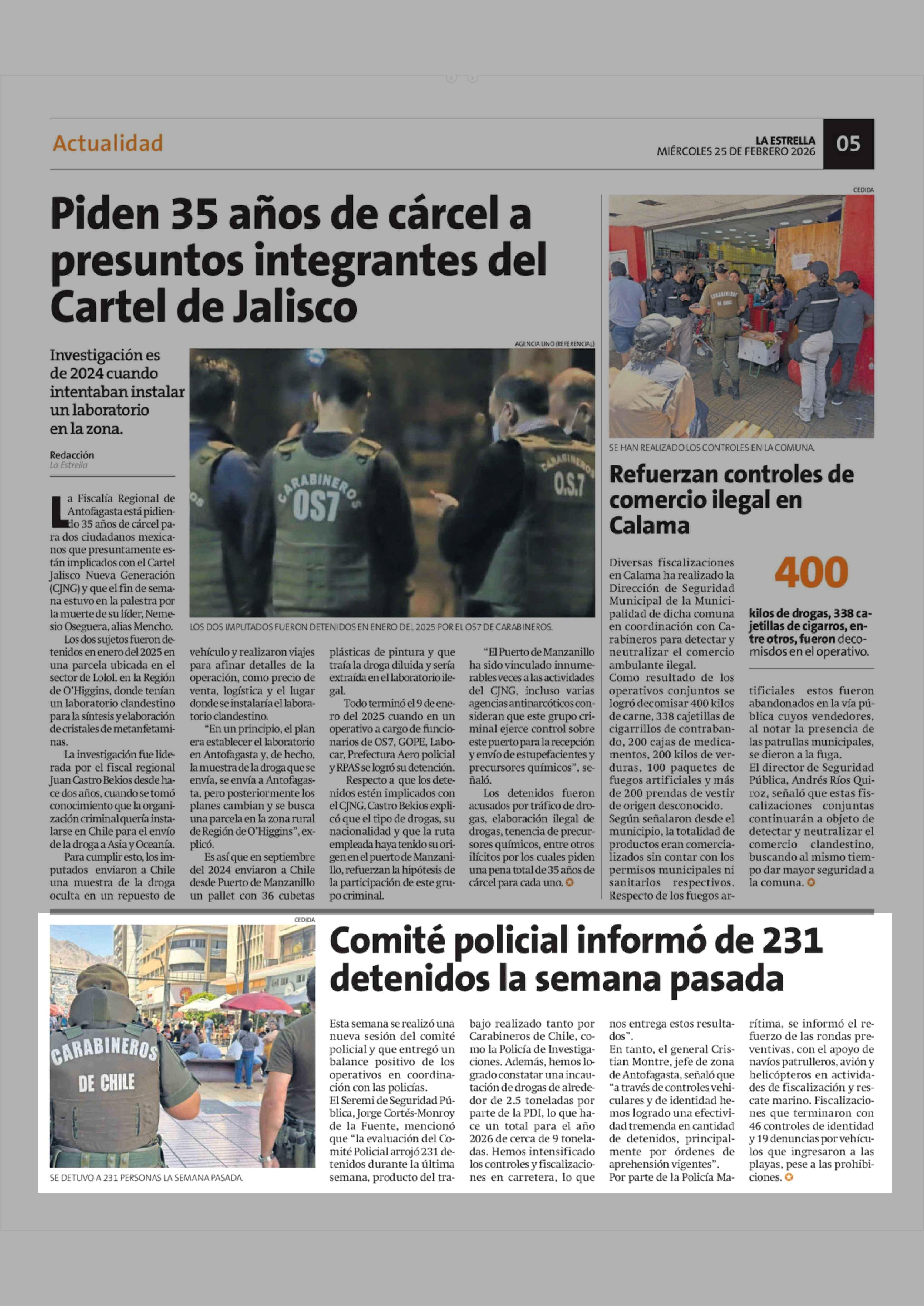 Comité policial informó de 231 detenidos la semana pasada 25-02-2026 La Estrella de Antofagasta |