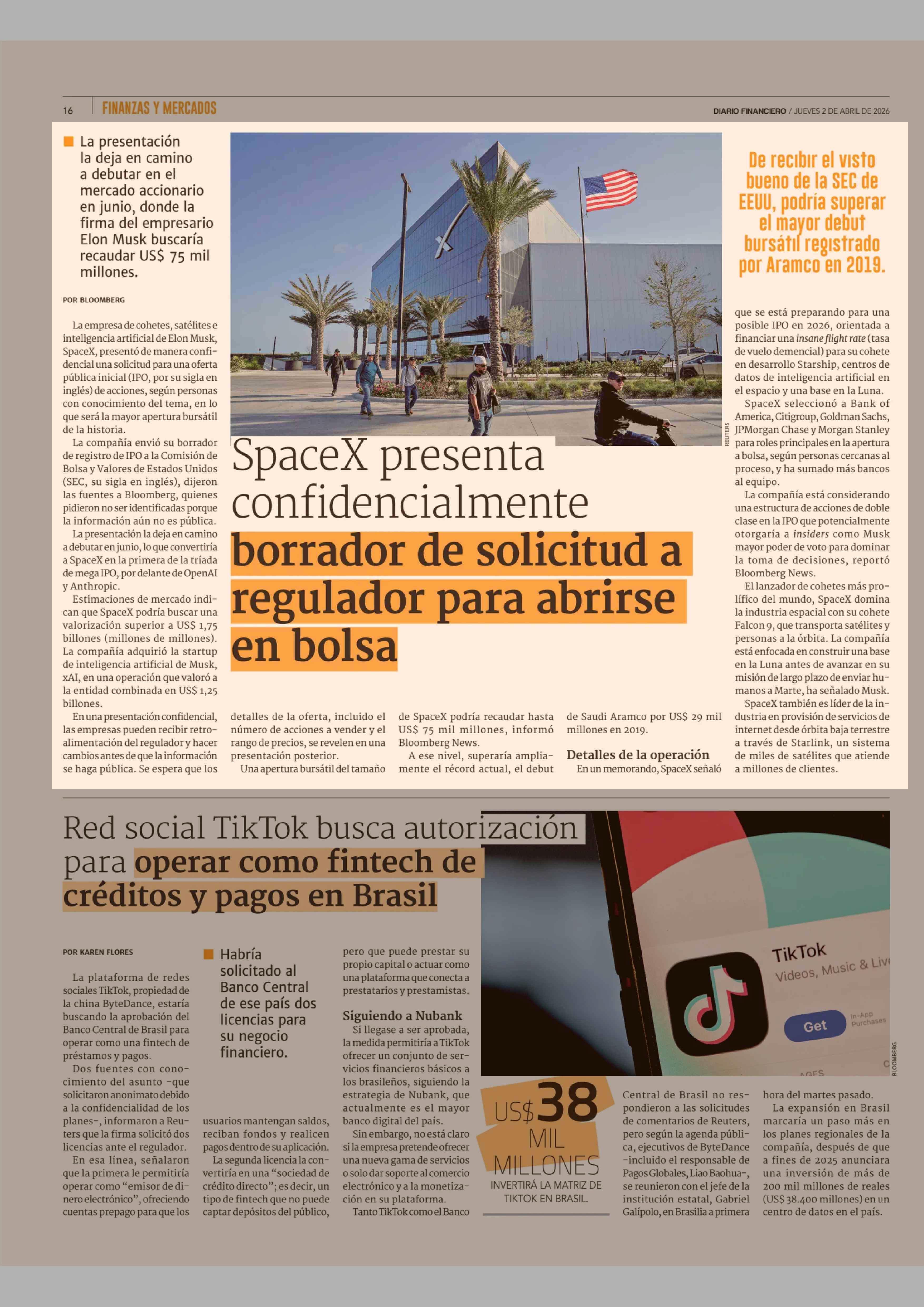 Fuente: Diario Financiero (Diario Financiero) Página(s): 16