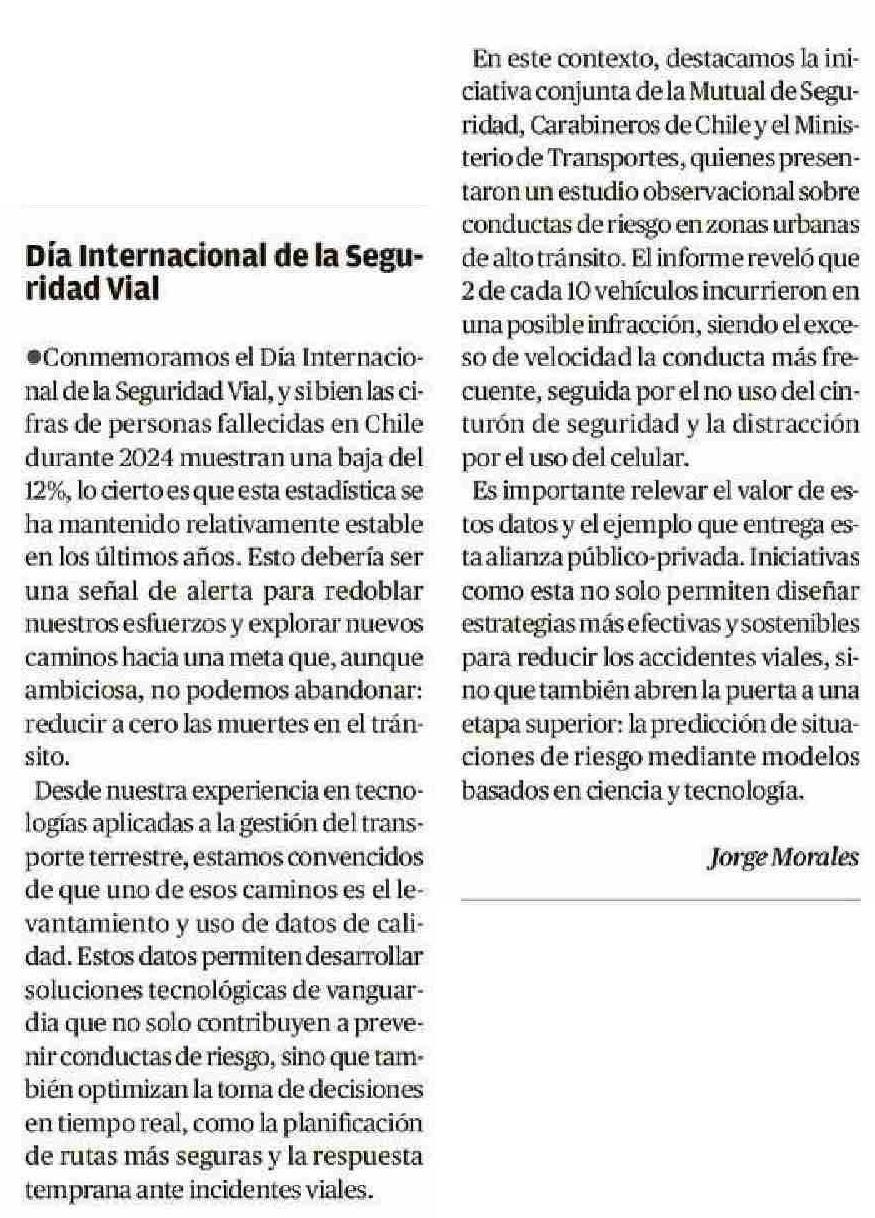CARTAS: Día Internacional de la Segu- ridad Vial