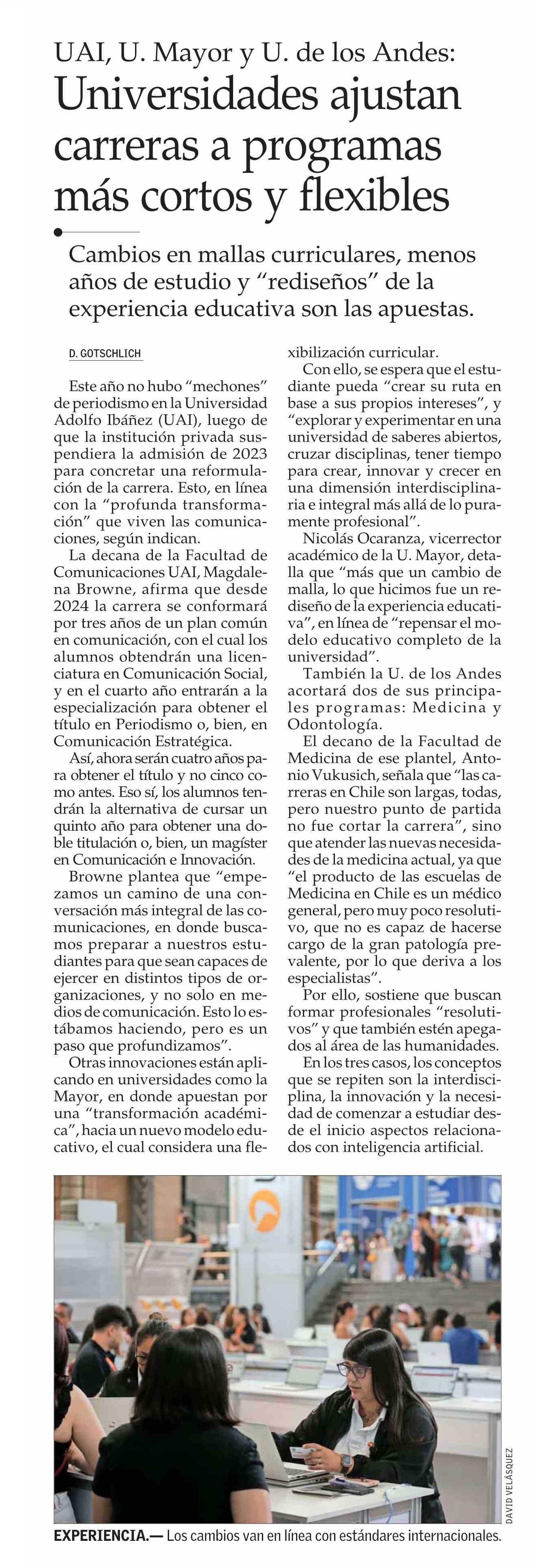 Universidades ajustan carreras a programas más cortos y flexibles 05-08-2023 El Mercurio |