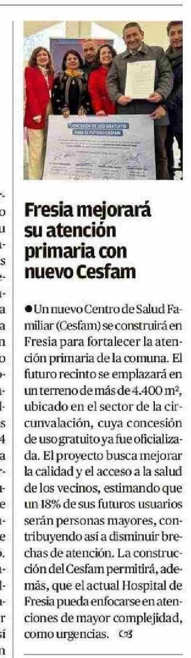 | Título: | Fresia mejorará primaria con nuevo Cesfam su atención |