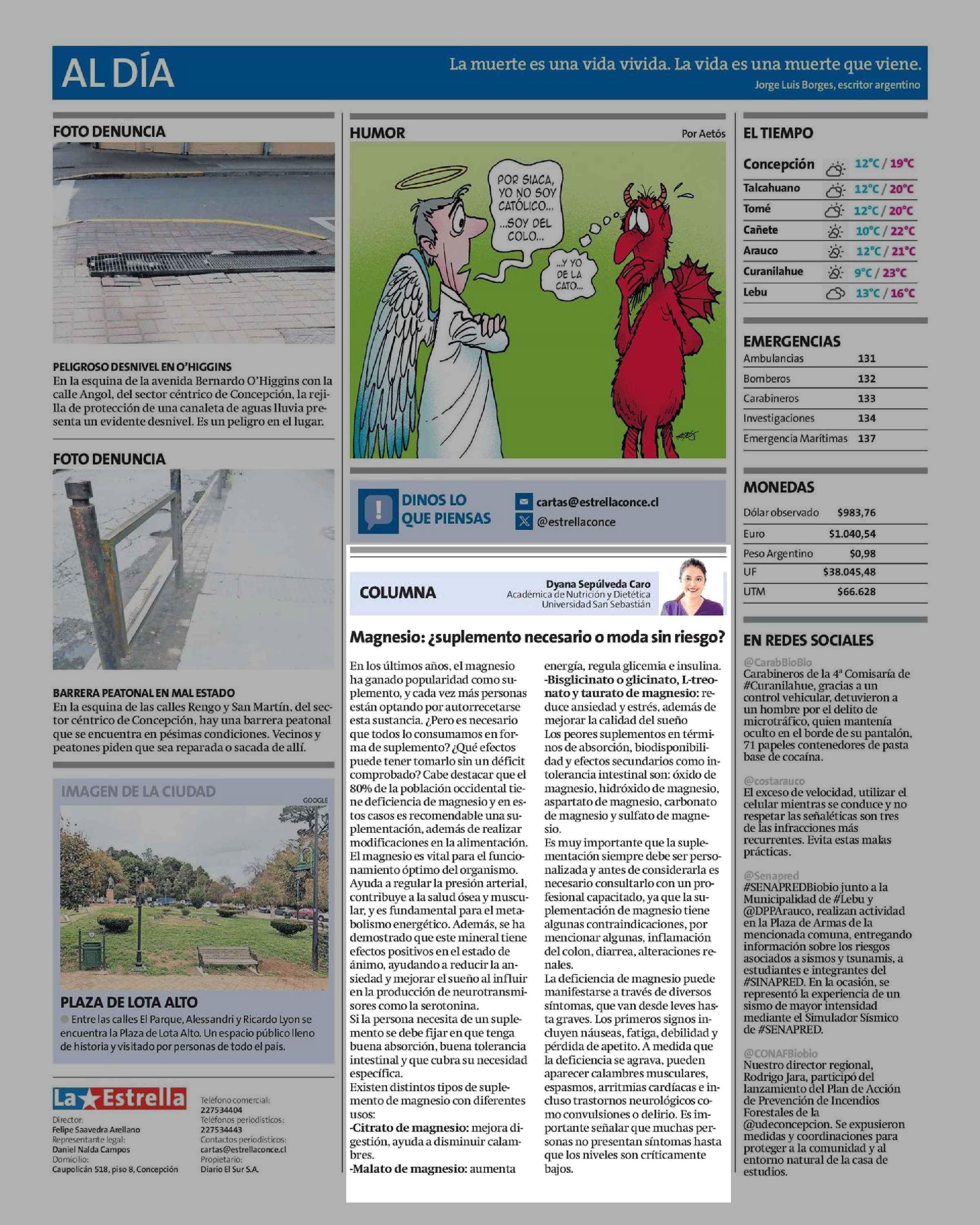 Magnesio: ¿suplemento necesario o moda sin riesgo? 14-11-2024 La Estrella de Concepción |