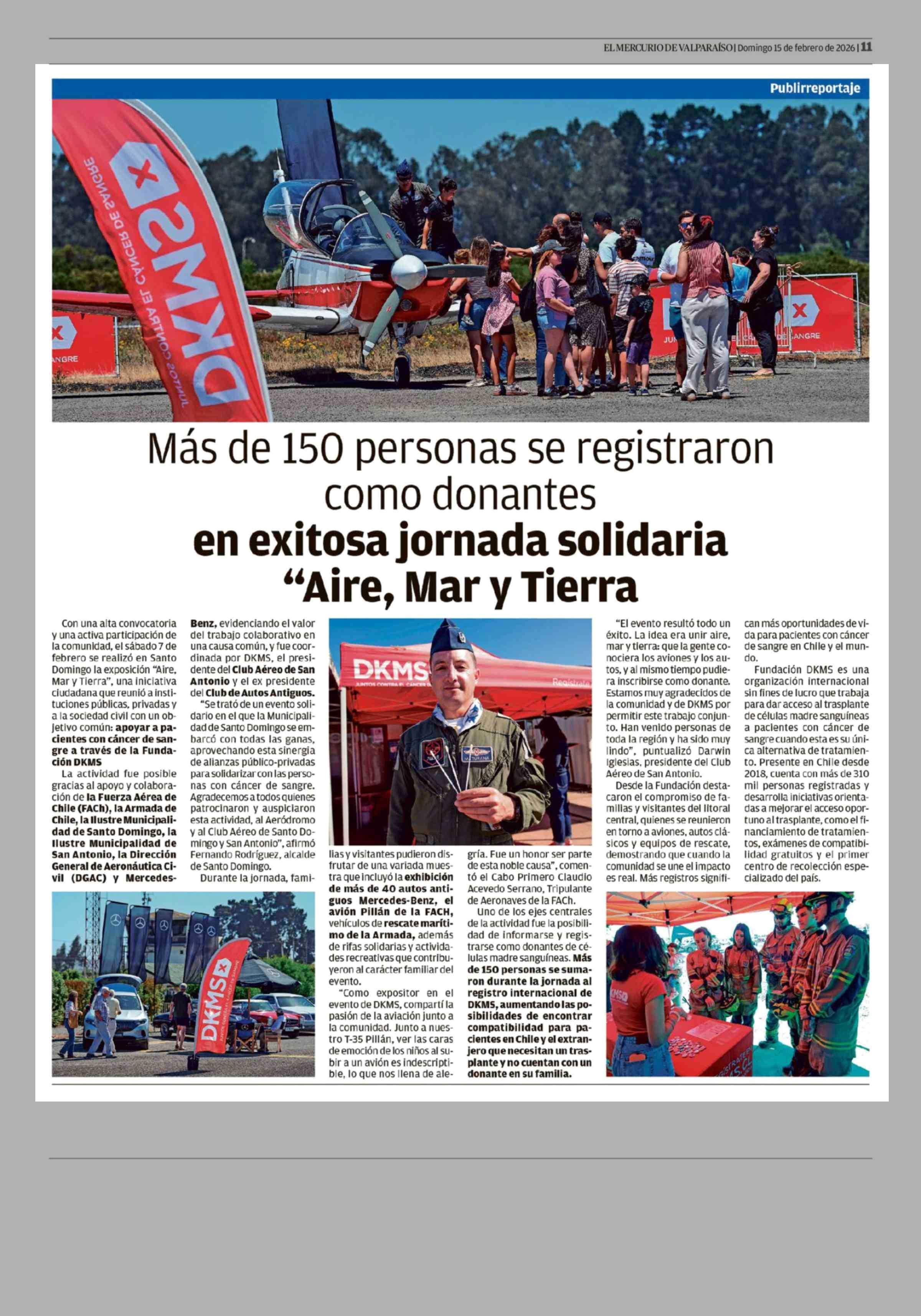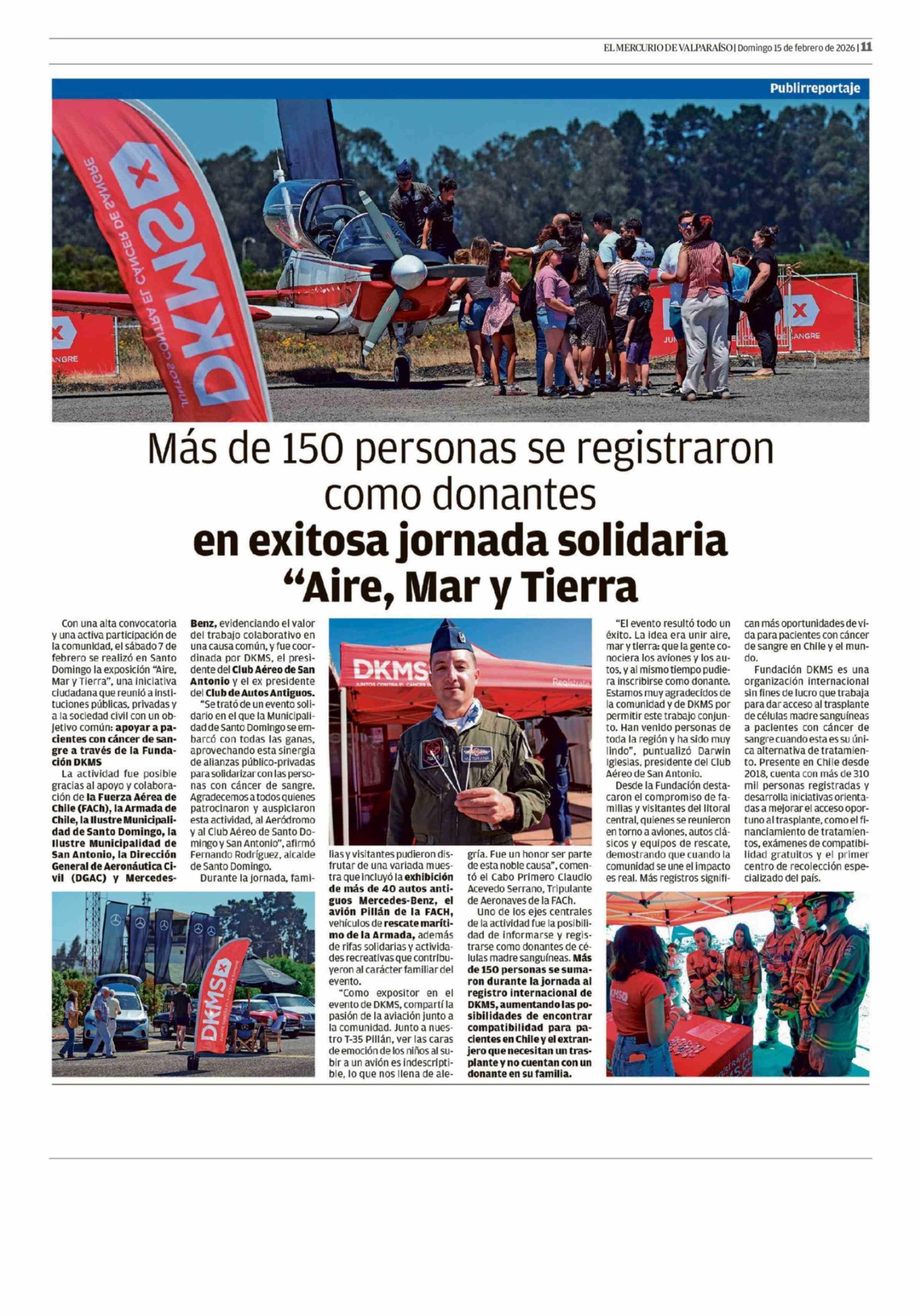 Título: Más de 150 personas se registraron como donantes en exitosa jornada solidaria "Aire, Mar y Tierra