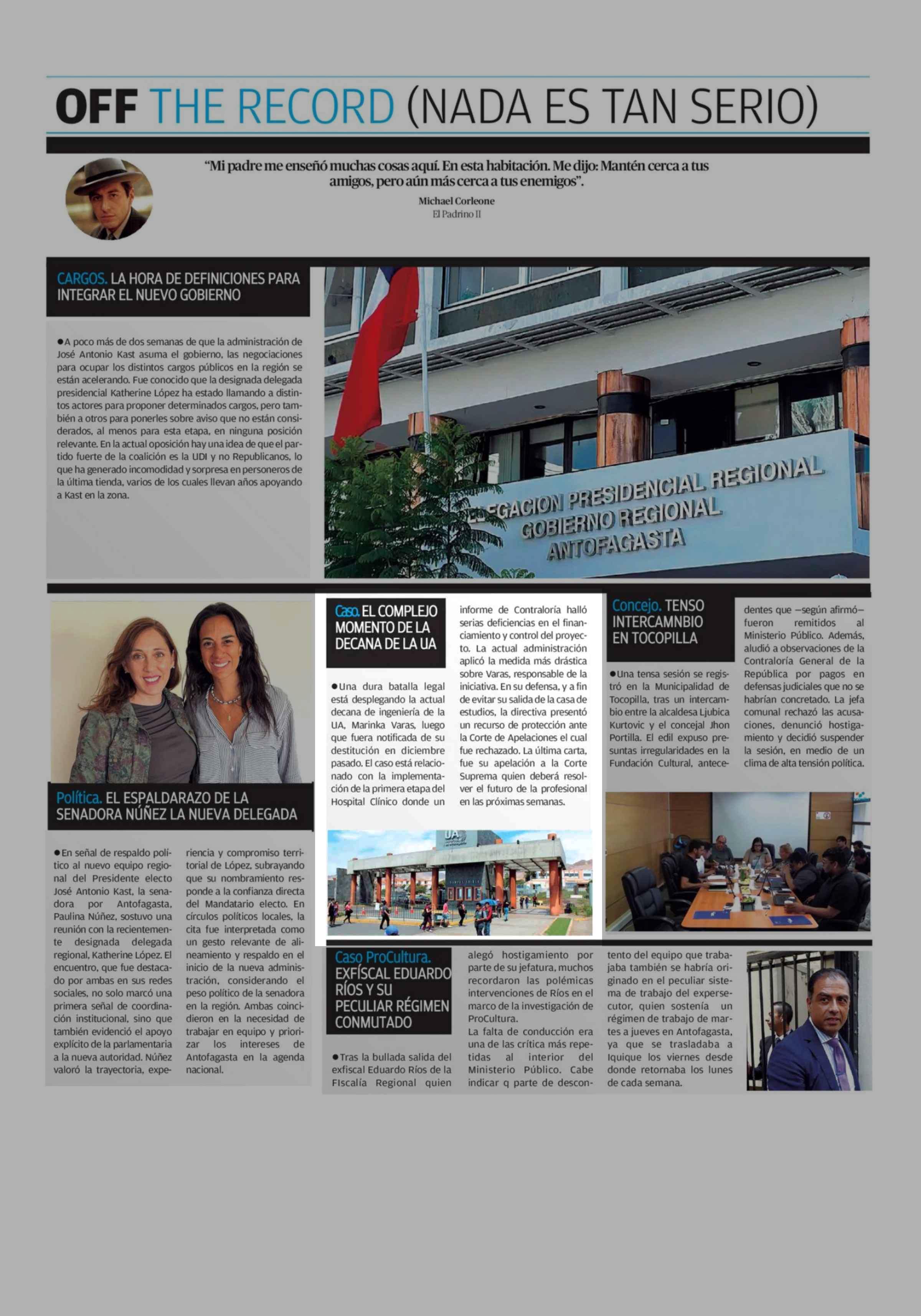 Caso. EL COMPLEJO MOMENTO DE LA DECANA DE LAUA 22-02-2026 El Mercurio de Calama |