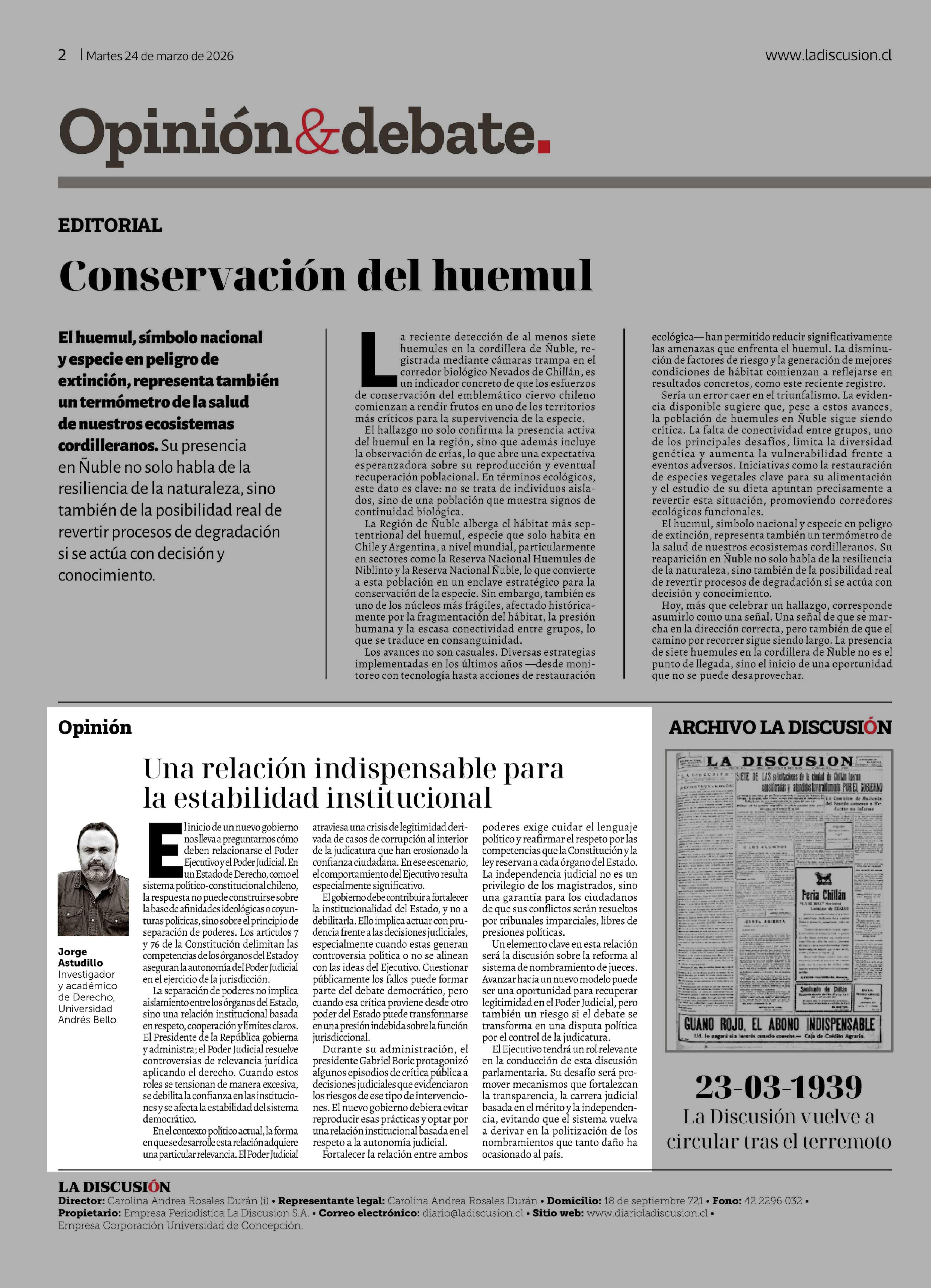 Columnas de Opinión: Una relación indispensable para la estabilidad institucional 24-03-2026 La Discusión |