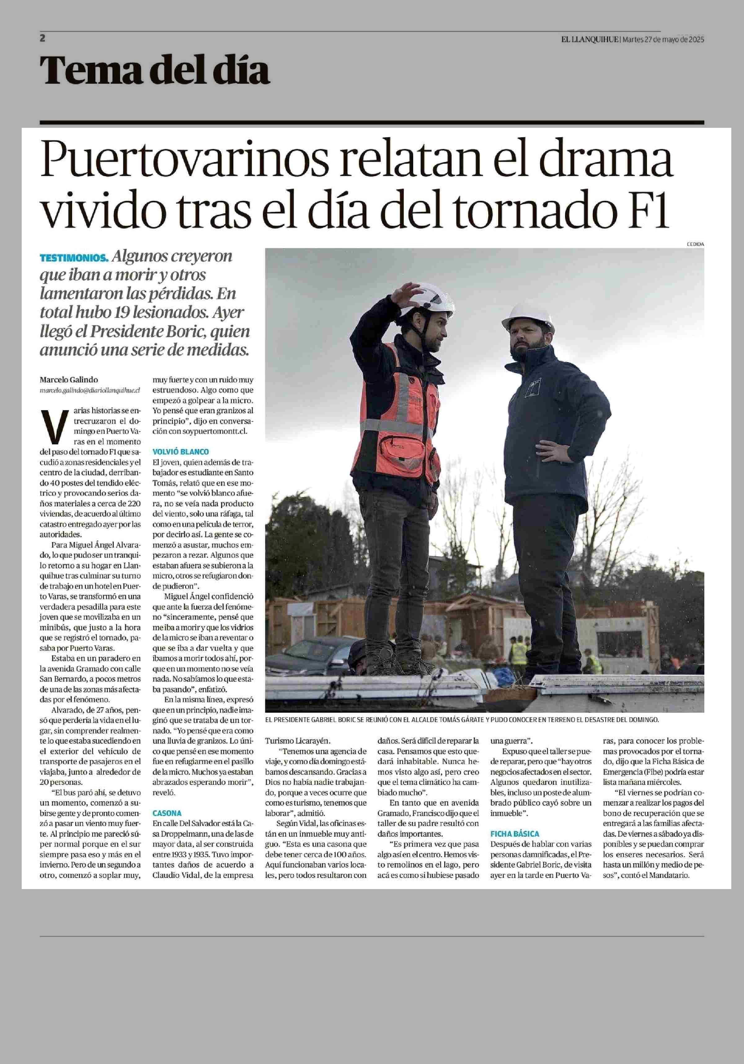 Puertovarinos relatan el drama tras el día del tornado Fi 27-05-2025 El Llanquihue |