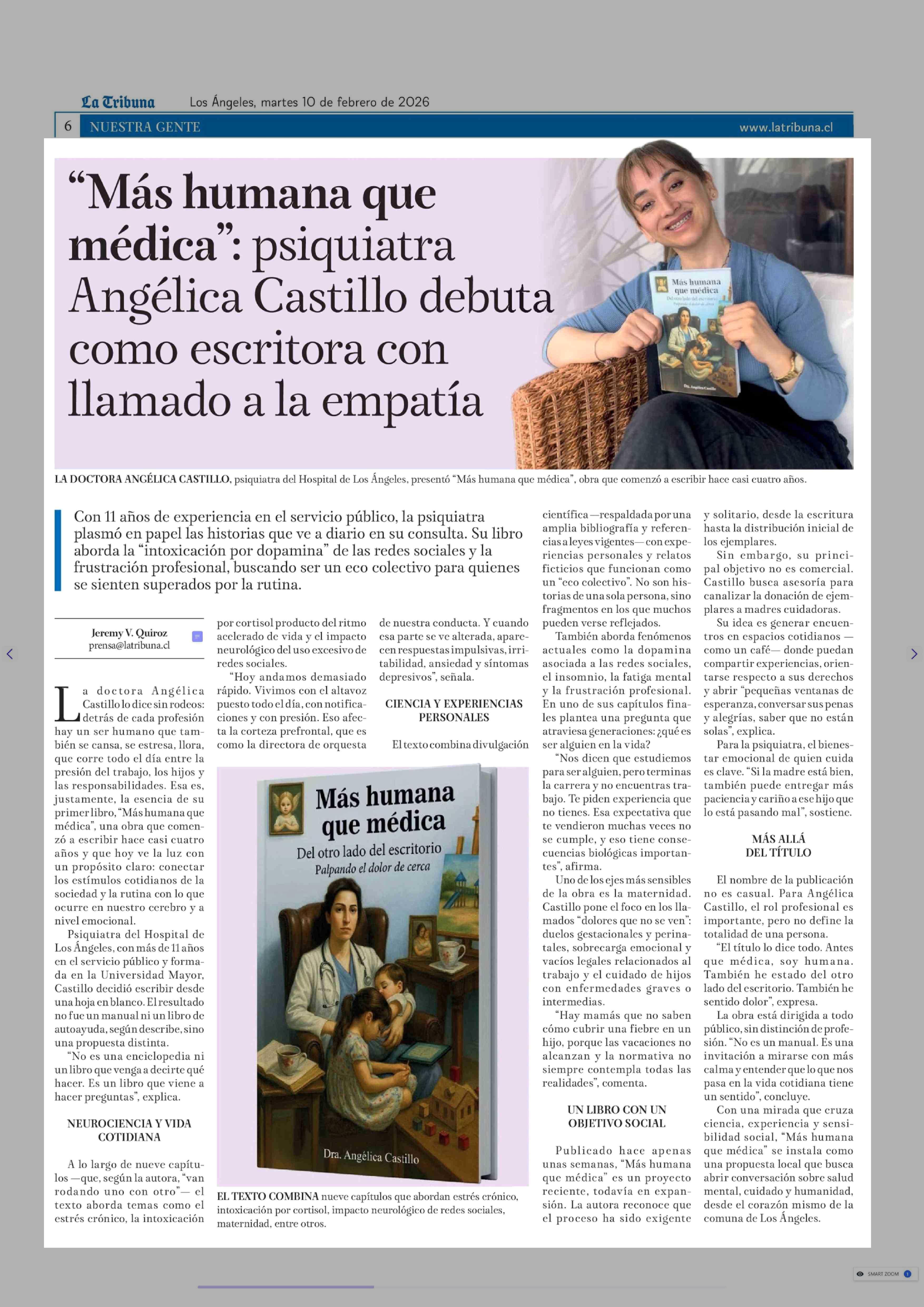Título: "Más humana que médica": psiquiatra Angélica Castillo debuta como escritora con llamado a la empatía