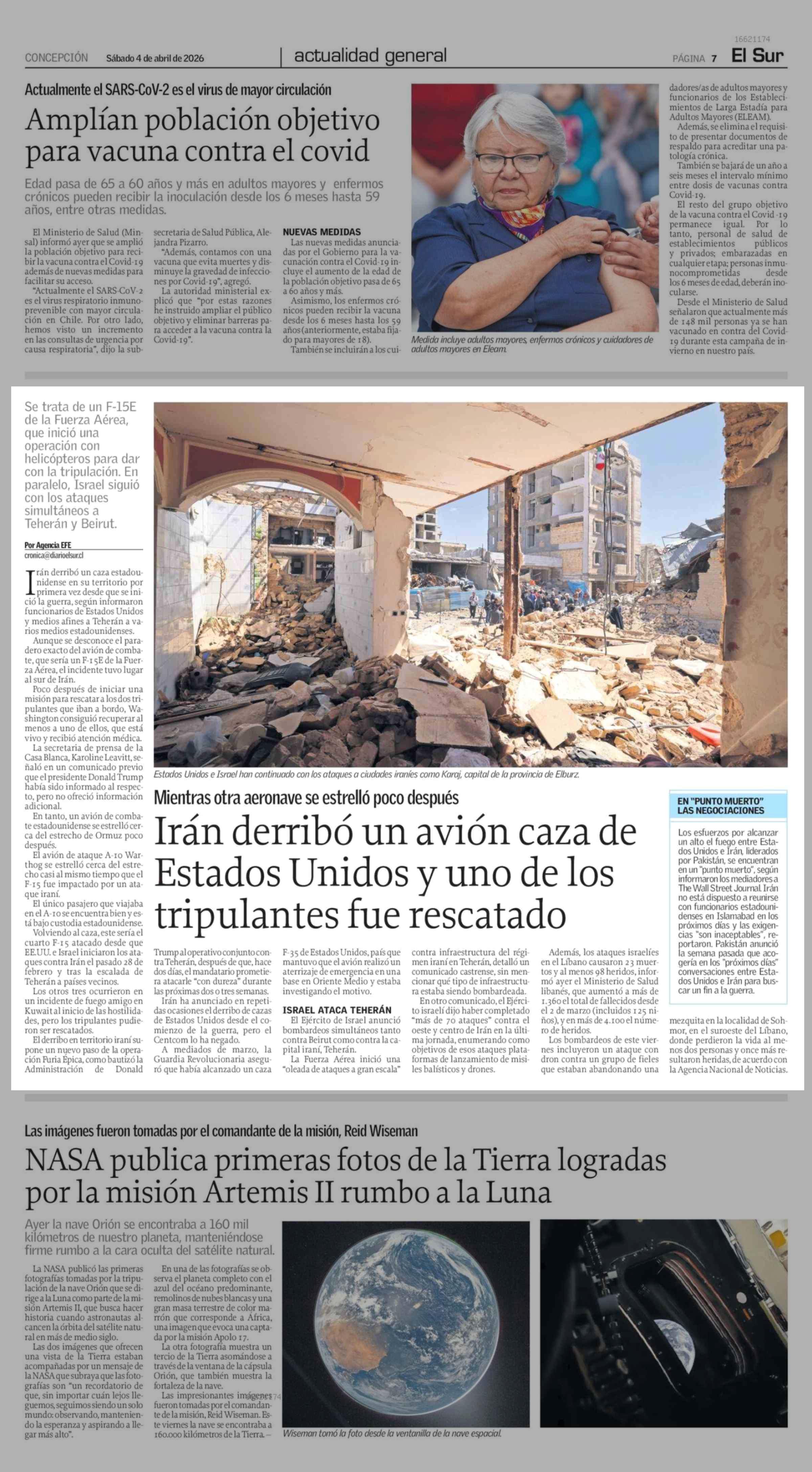 Irán derribó un avión caza de Estados Unidos y uno de los tripulantes fue rescatado 04-04-2026 El Sur |