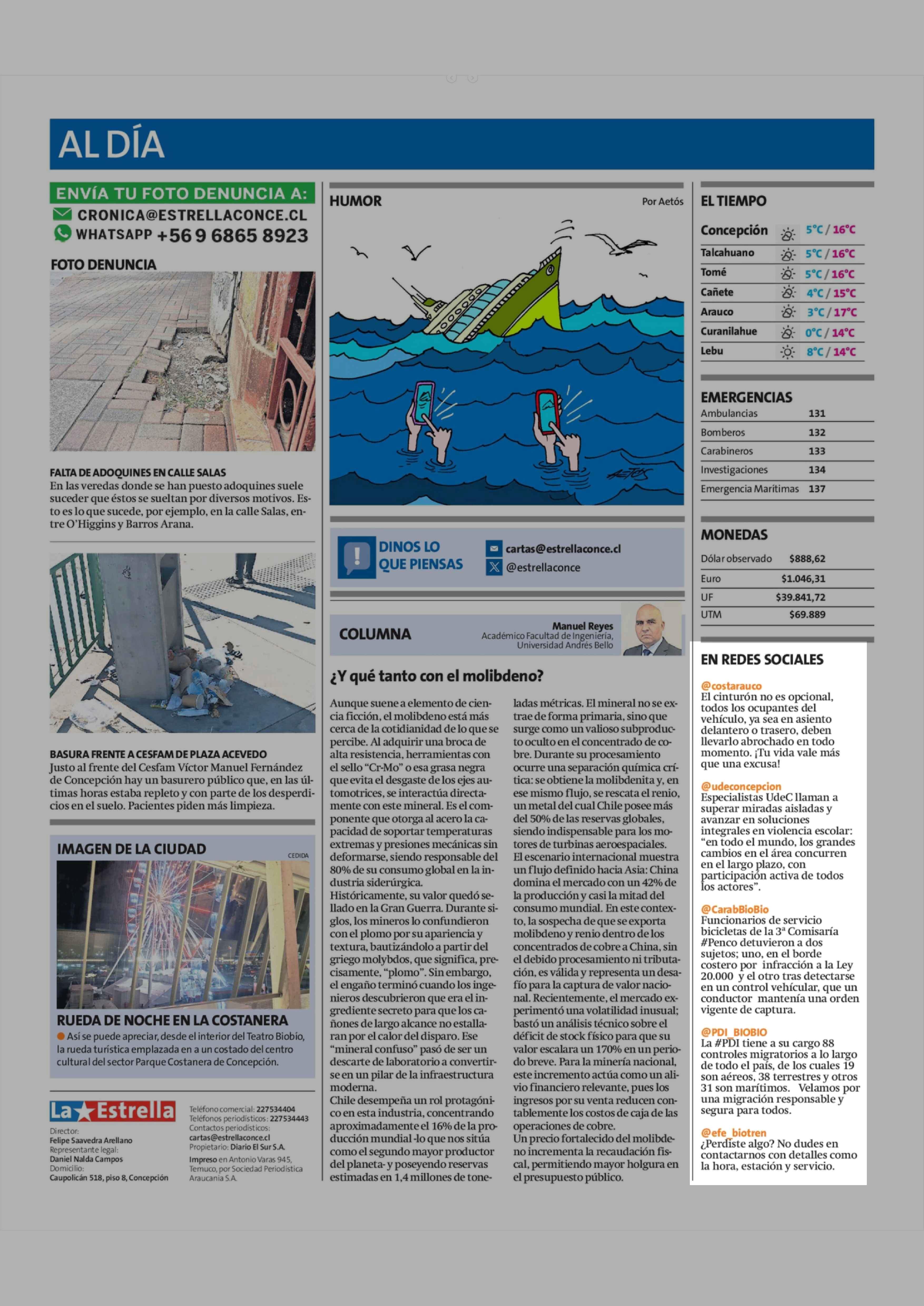 EN REDES SOCIALES 20-04-2026 La Estrella de Concepción |