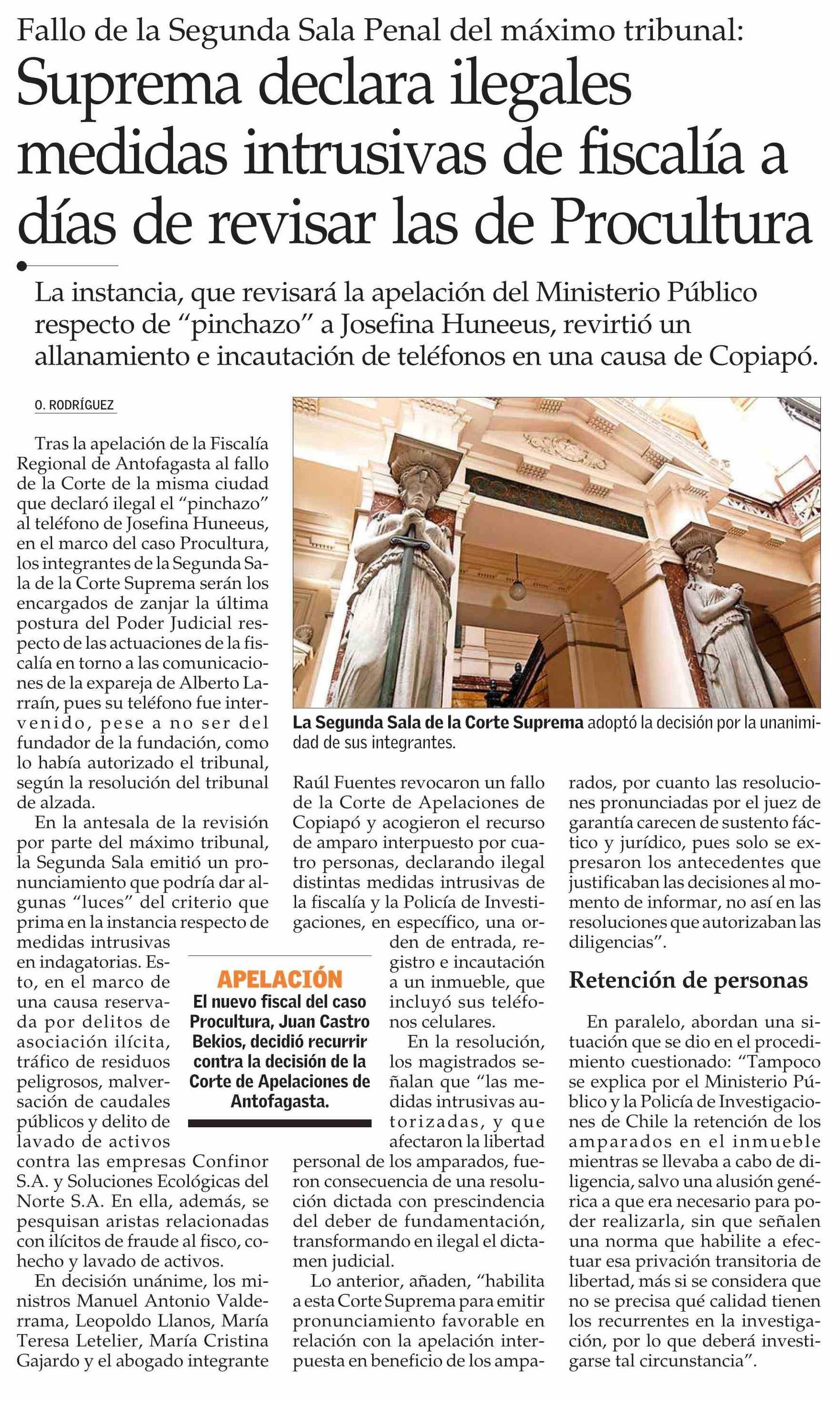 Suprema declara ilegales medidas intrusivas de fiscalía a días de revisar las de Procultura 24-05-2025 El Mercurio |