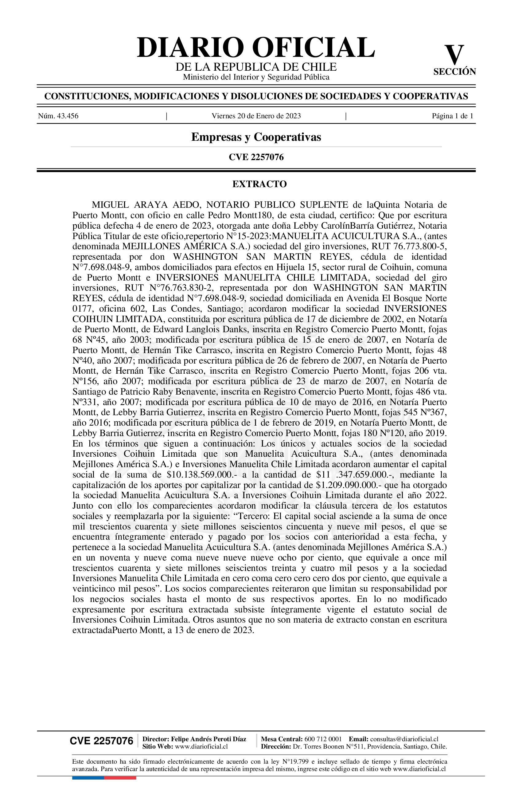 Extracto 20-01-2023 Diario Oficial Edición Electrónica |