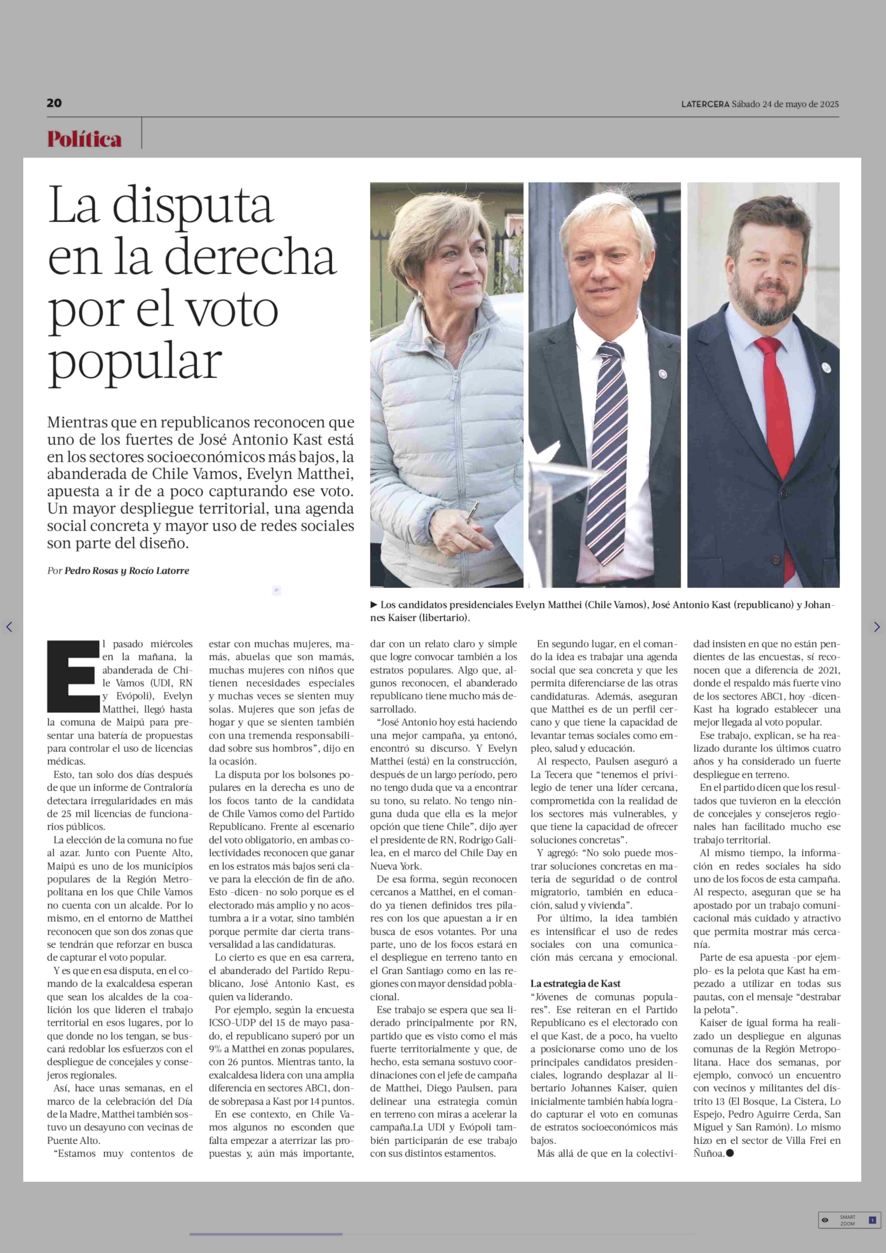 La disputa en la derecha por el voto popular 24-05-2025 La Tercera |