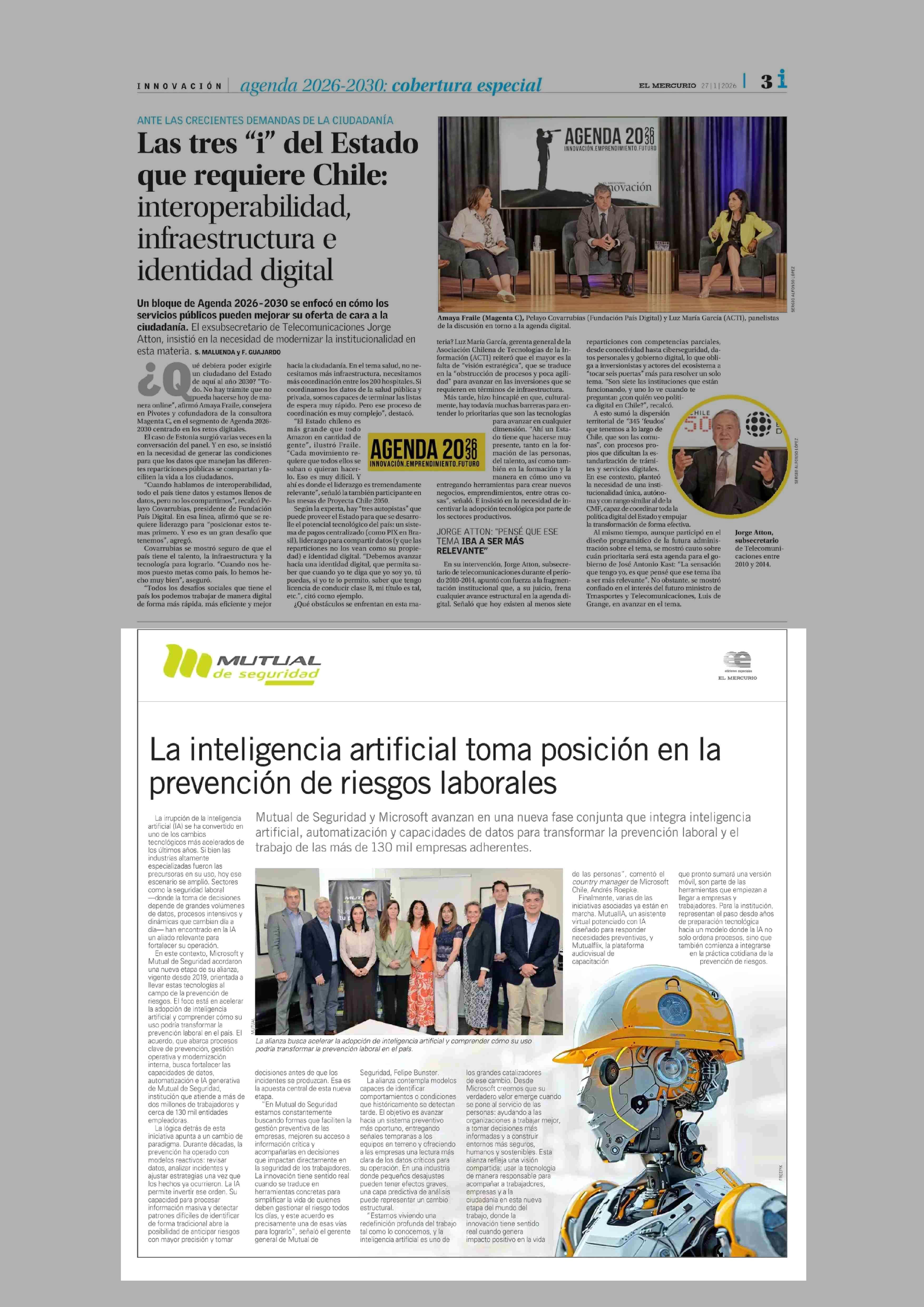 La inteligencia artificial toma posición en la prevención de riesgos laborales 27-01-2026 El Mercurio |