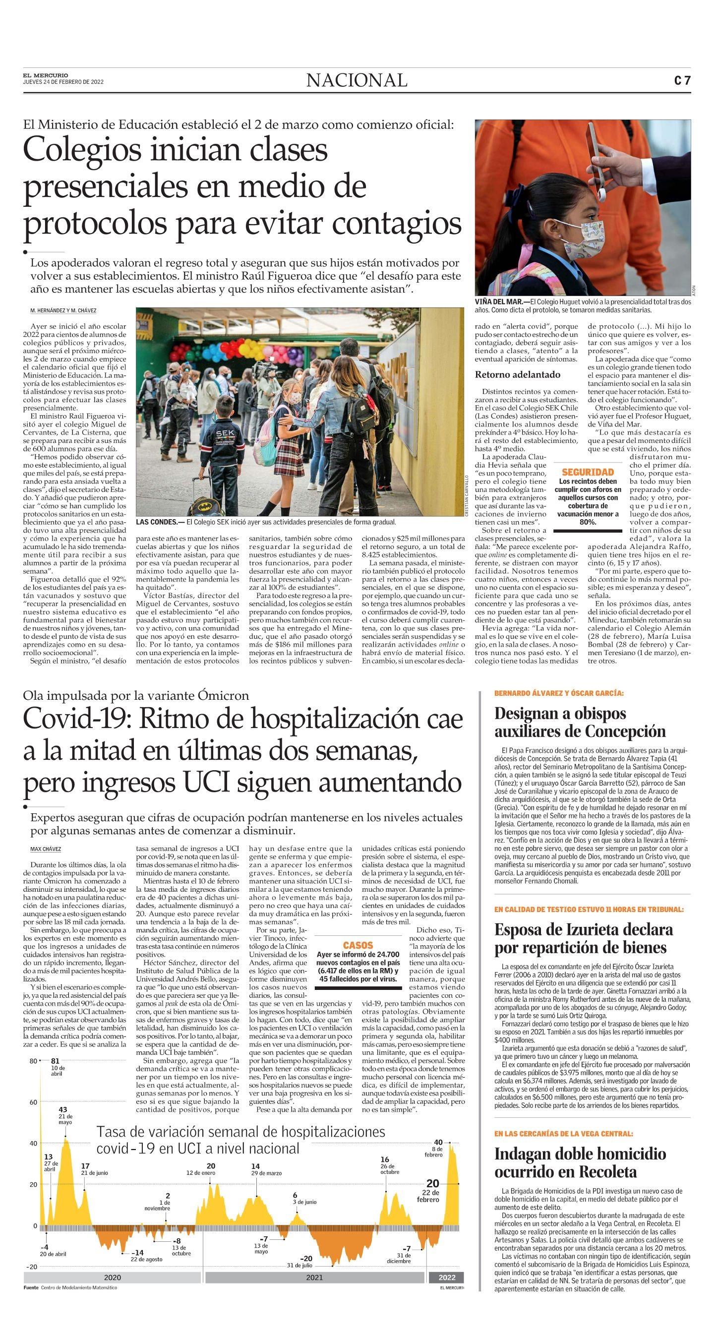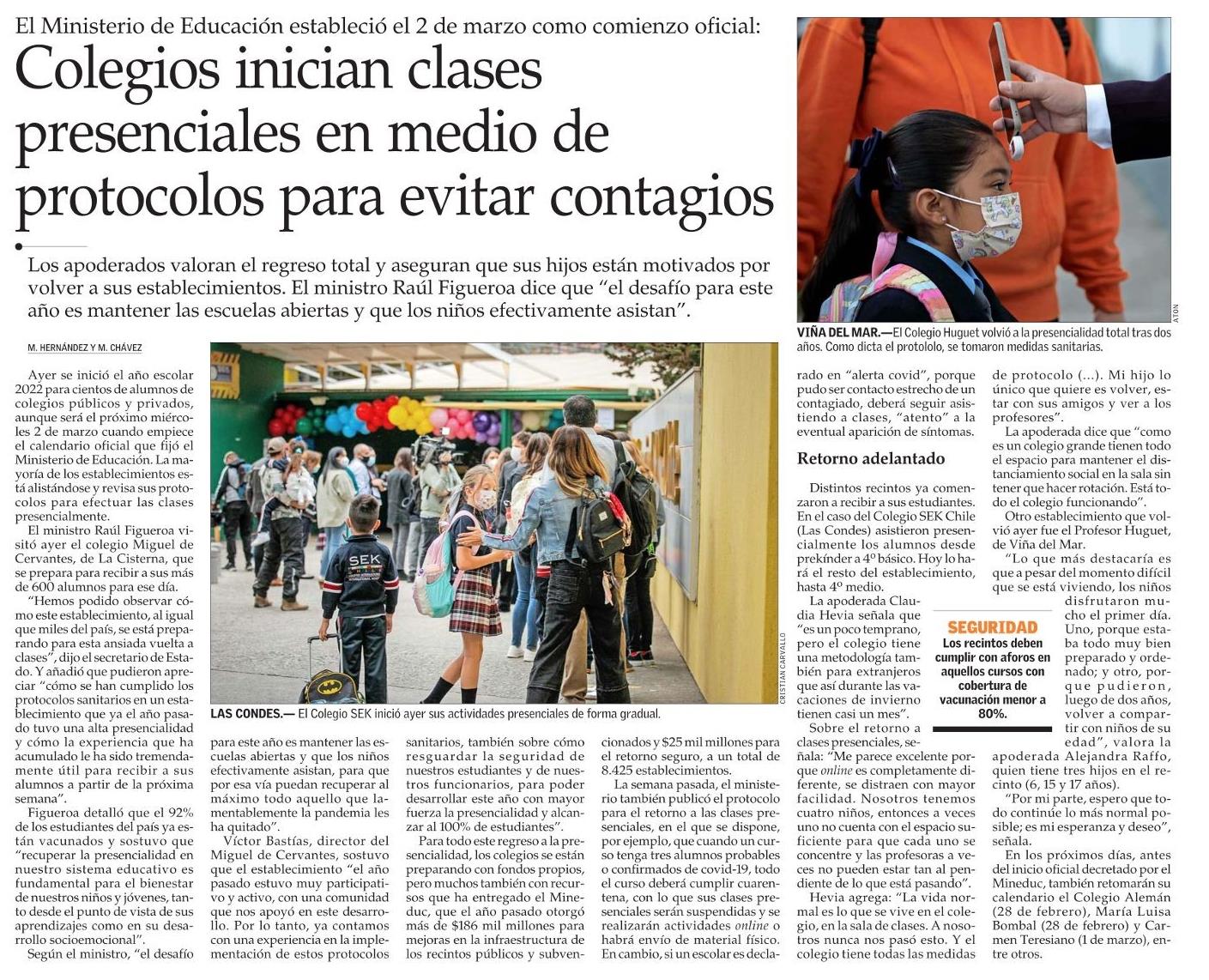 Colegios inician clases presenciales en medio de protocolos para evitar contagios 24-02-2022 El Mercurio |