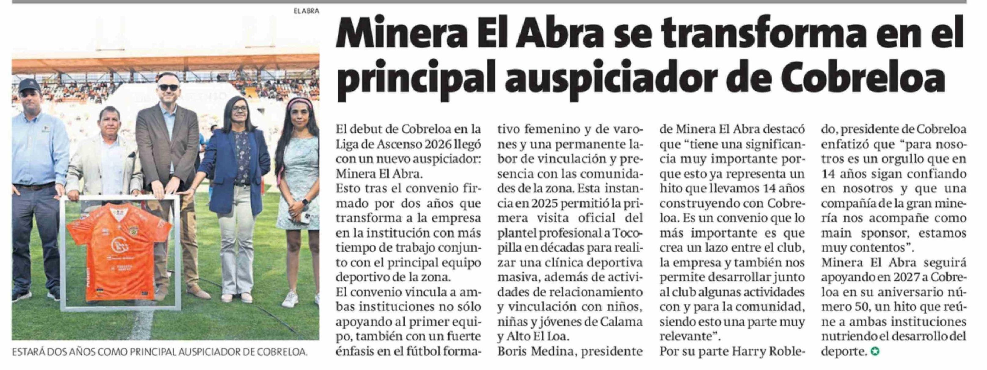 Título: Minera El Abra se transforma en el principal auspiciador de Cobreloa