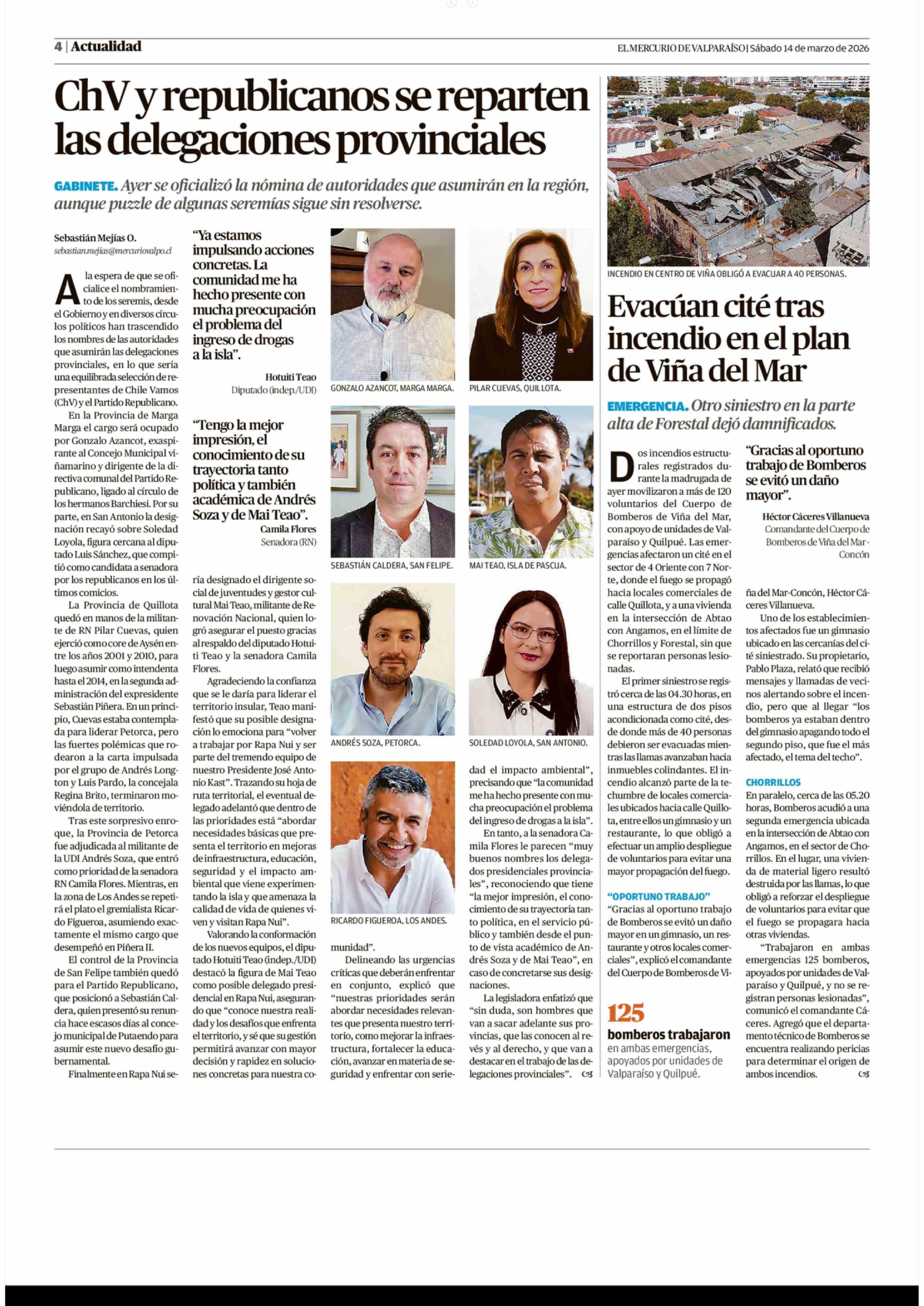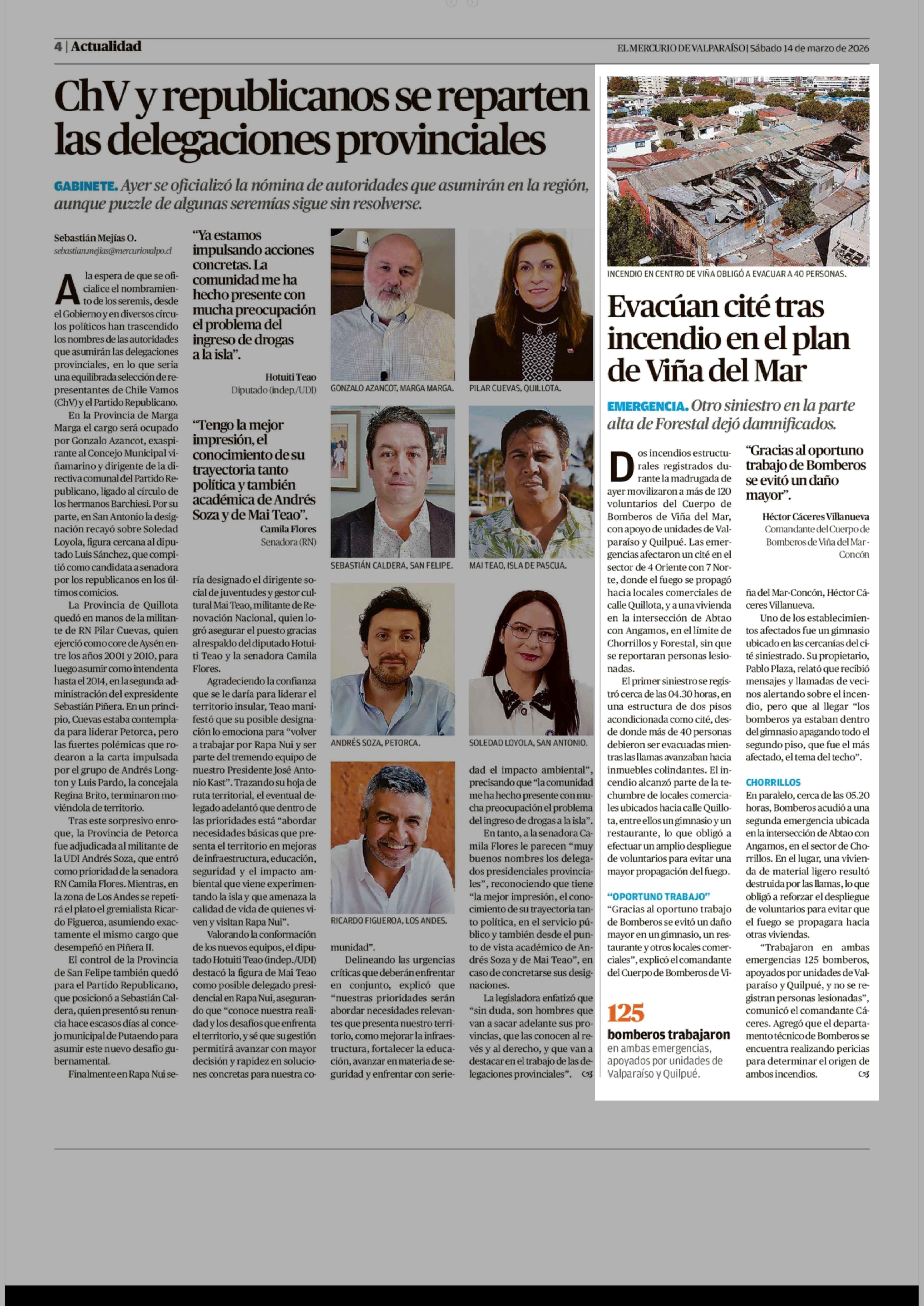 Evacúan cité tras incendio en el plan de Viña del Mar 14-03-2026 El Mercurio de Valparaíso |