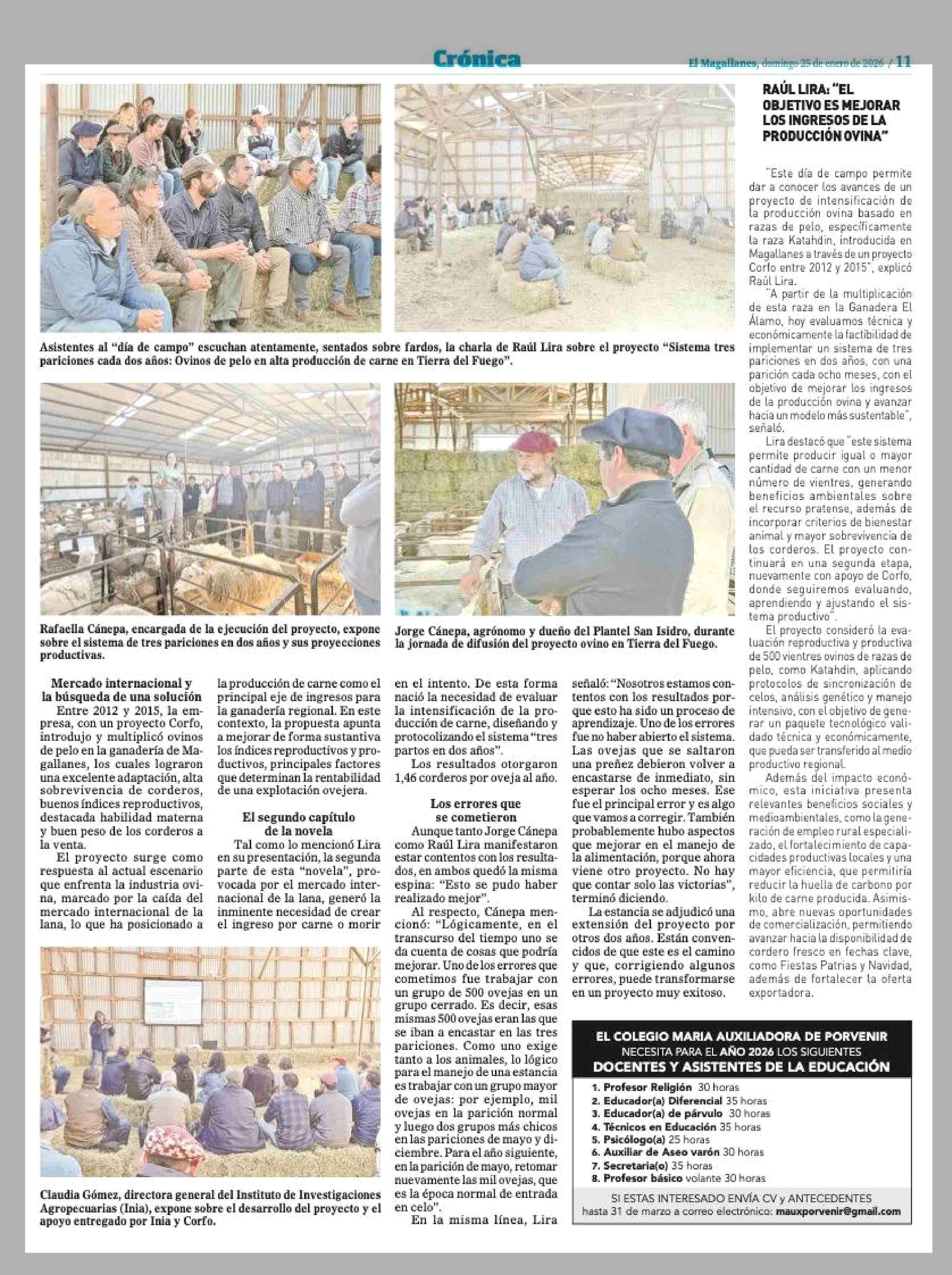Título: Innovador sistema de tres pariciones en dos años muestra resultados positivos en la ganadería ovina fueguina