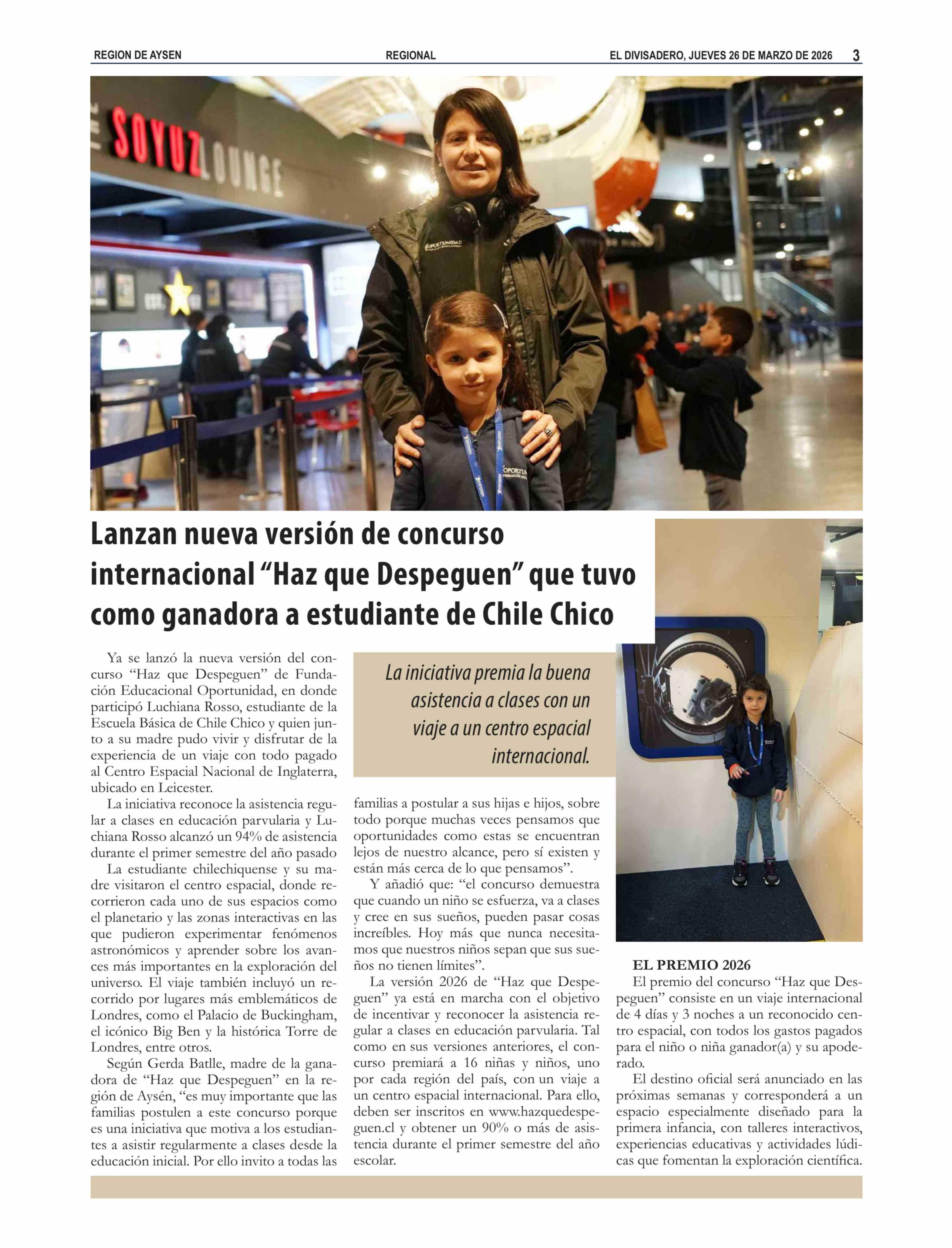 Título: Lanzan nueva versión de concurso internacional "Haz que Despeguen" que tuvo como ganadora a estudiante de Chile Chico