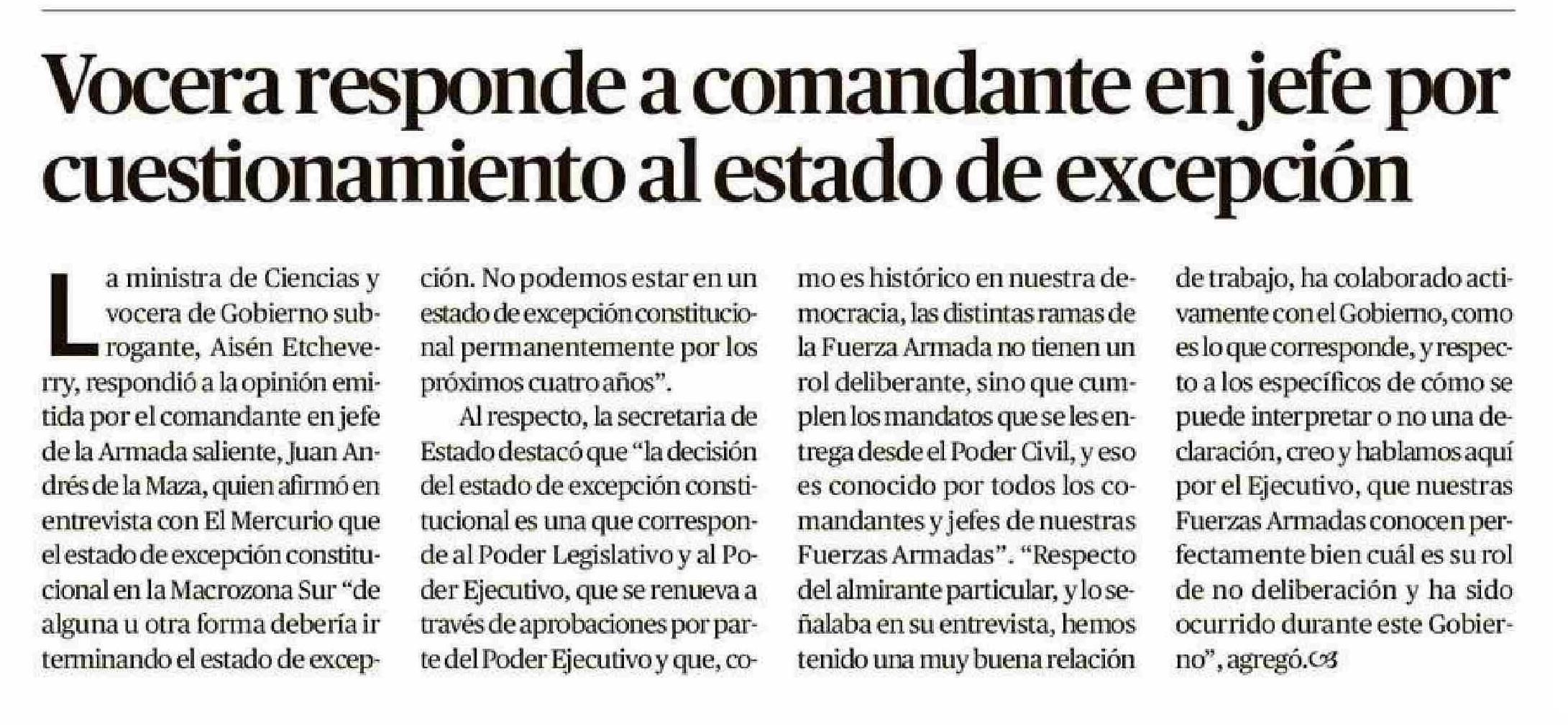 Vocera responde a comandante en jefe por | rcccononooronorniamon cuestionamiento al estado de excepción 17-06-2025 Diario Austral Región de Los Ríos |
