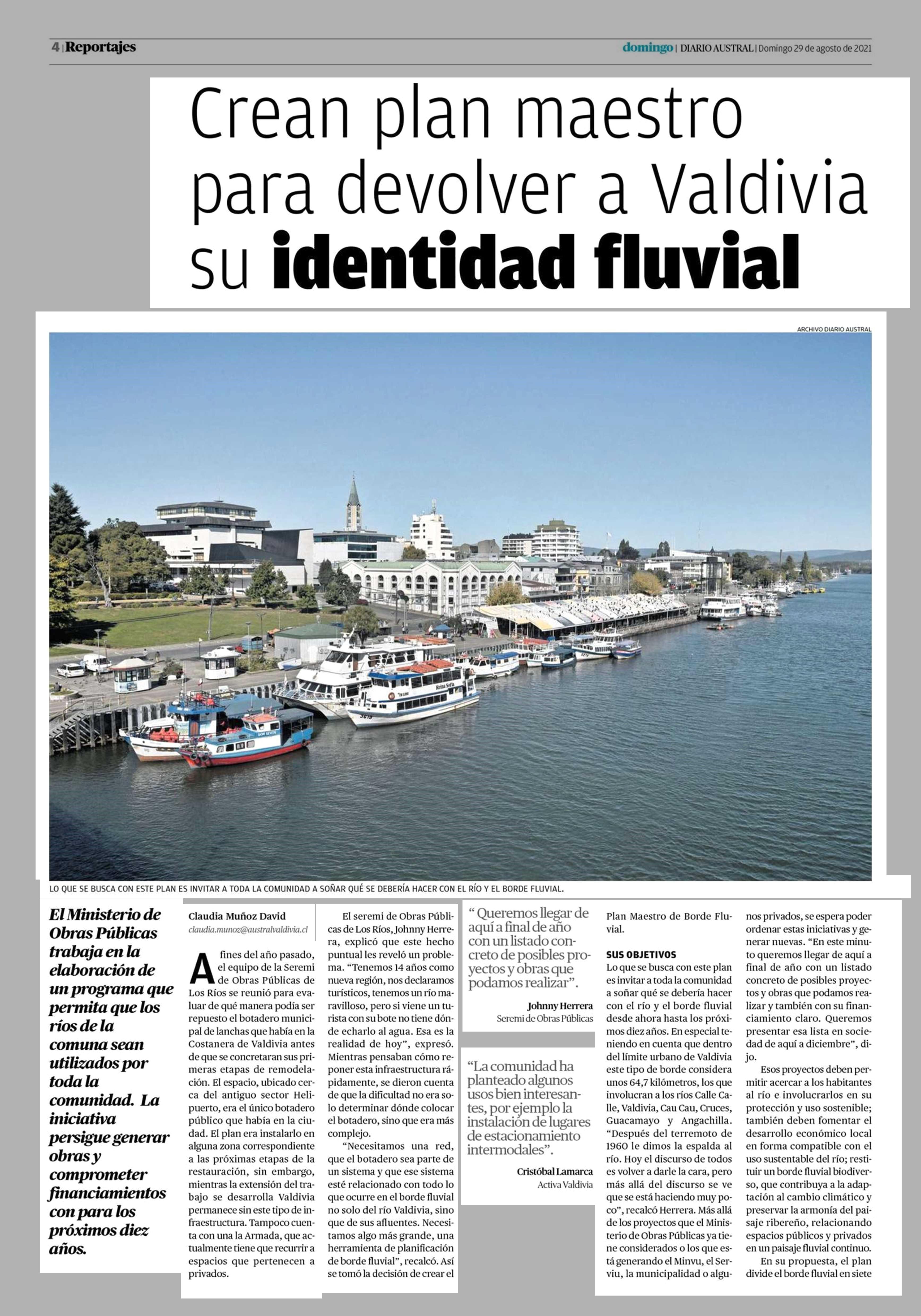Crean plan maestro para devolver a Valdivia su Identidad fluvial 29-08-2021 Diario Austral Región de Los Ríos |