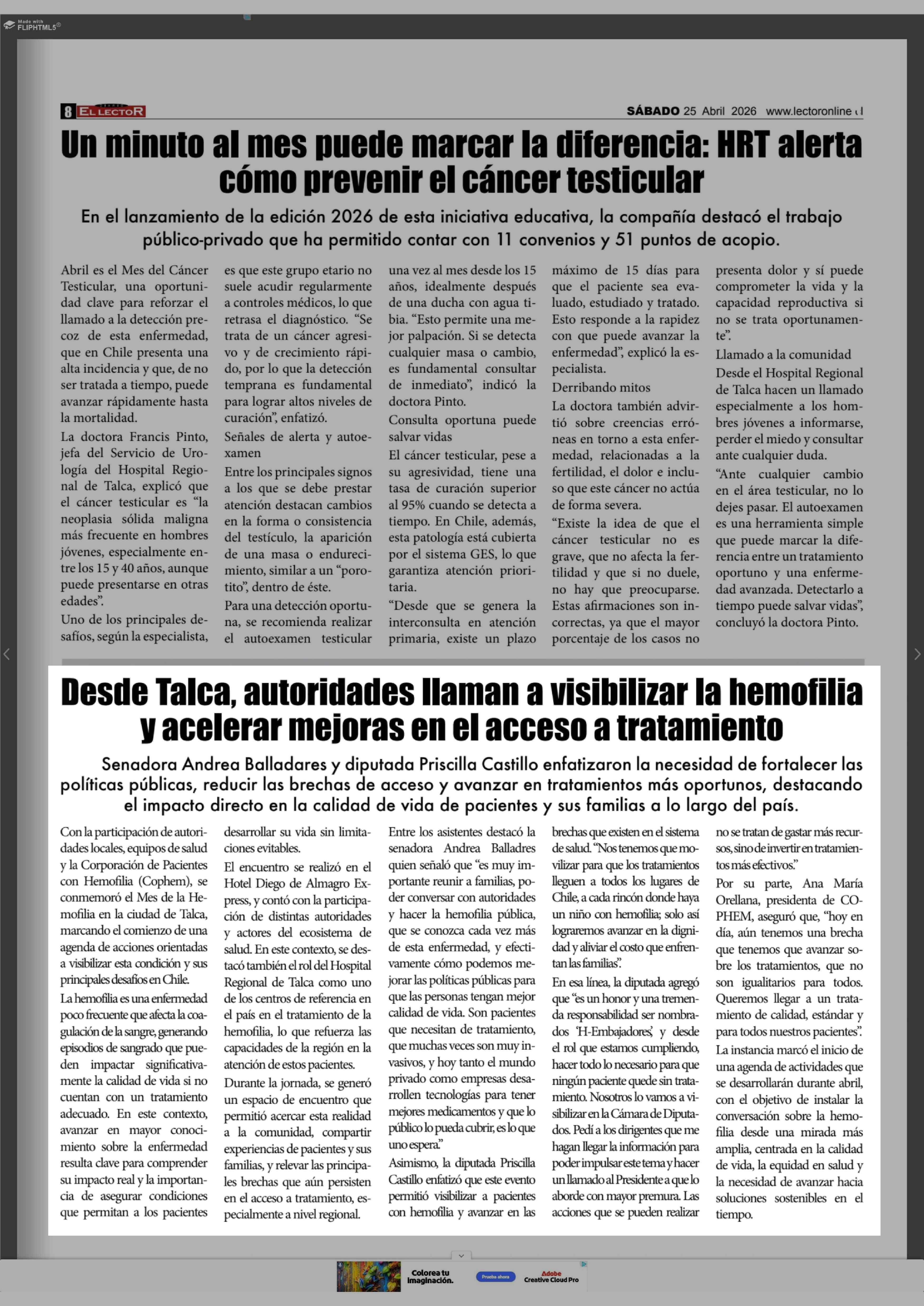 Desde Talca, autoridades llaman a visibilizar la hemofilia y acelerar mejoras en el acceso a tratamiento 25-04-2026 El Lector |