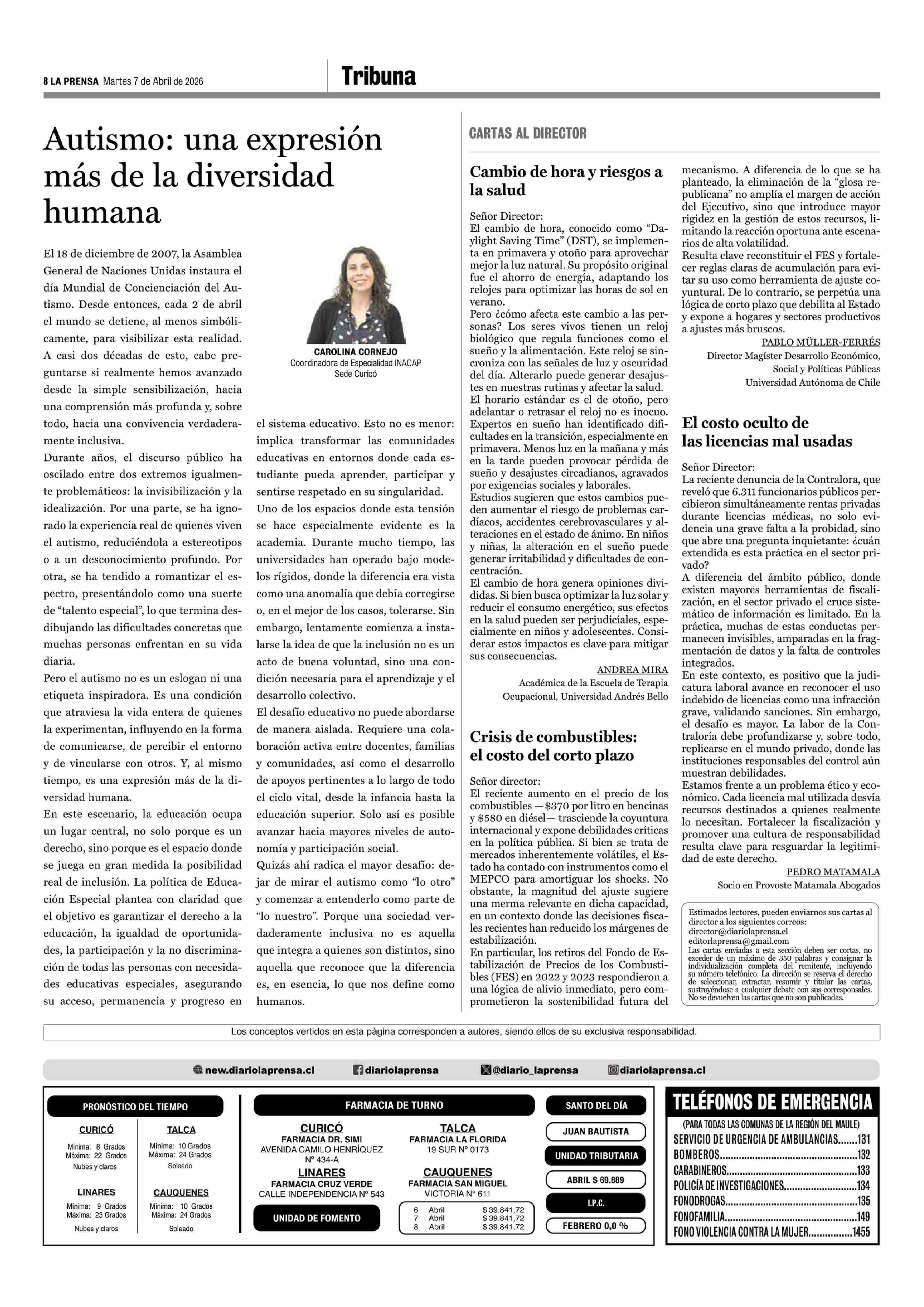 Fecha: 07-04-2026 Sector: Columnas de Opinión Región: Región del Maule