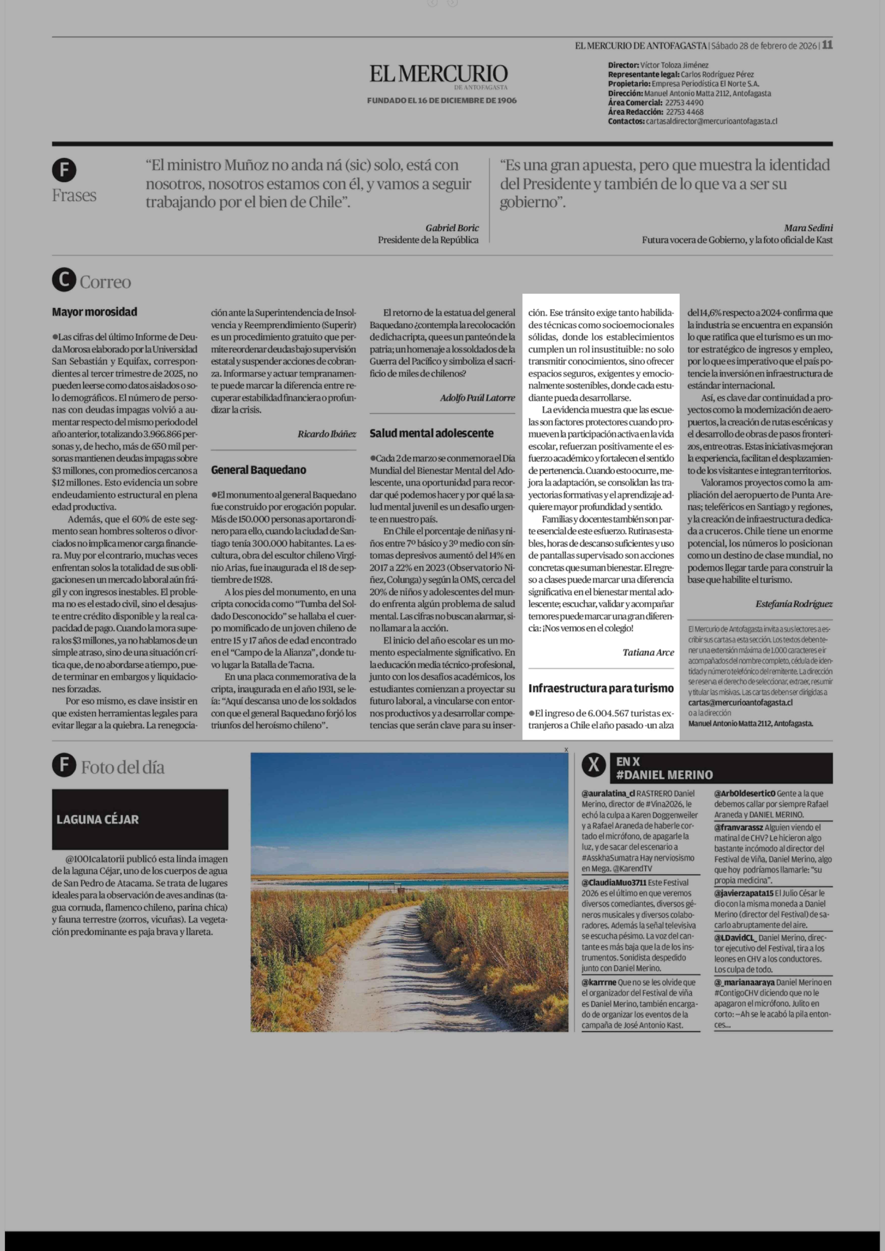 CARTAS: Salud mental adolescente 28-02-2026 El Mercurio de Antofagasta |