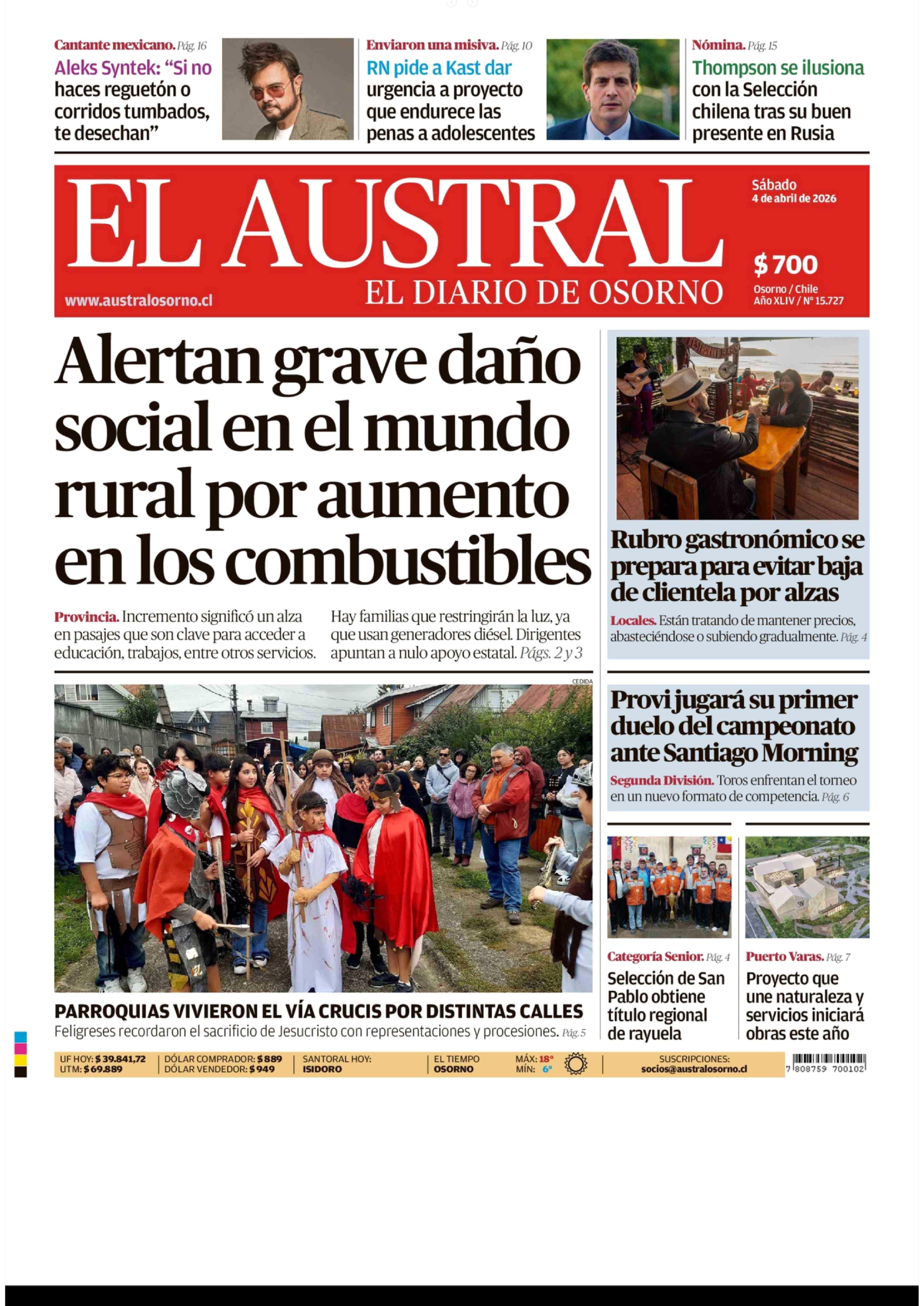 PORTADA EL AUSTRAL DE OSORNO CHILE 04-04-2026 El Austral de Osorno |
