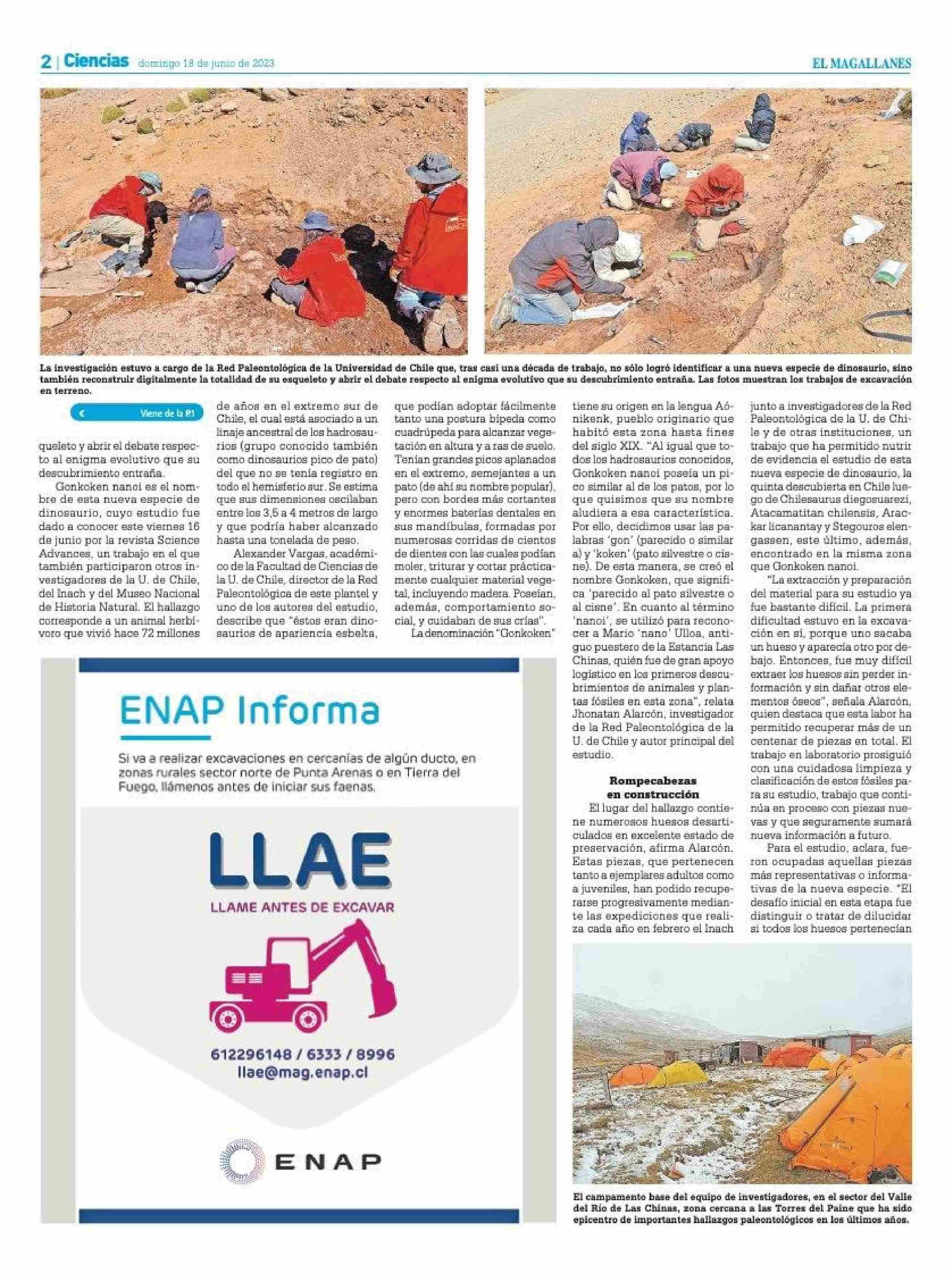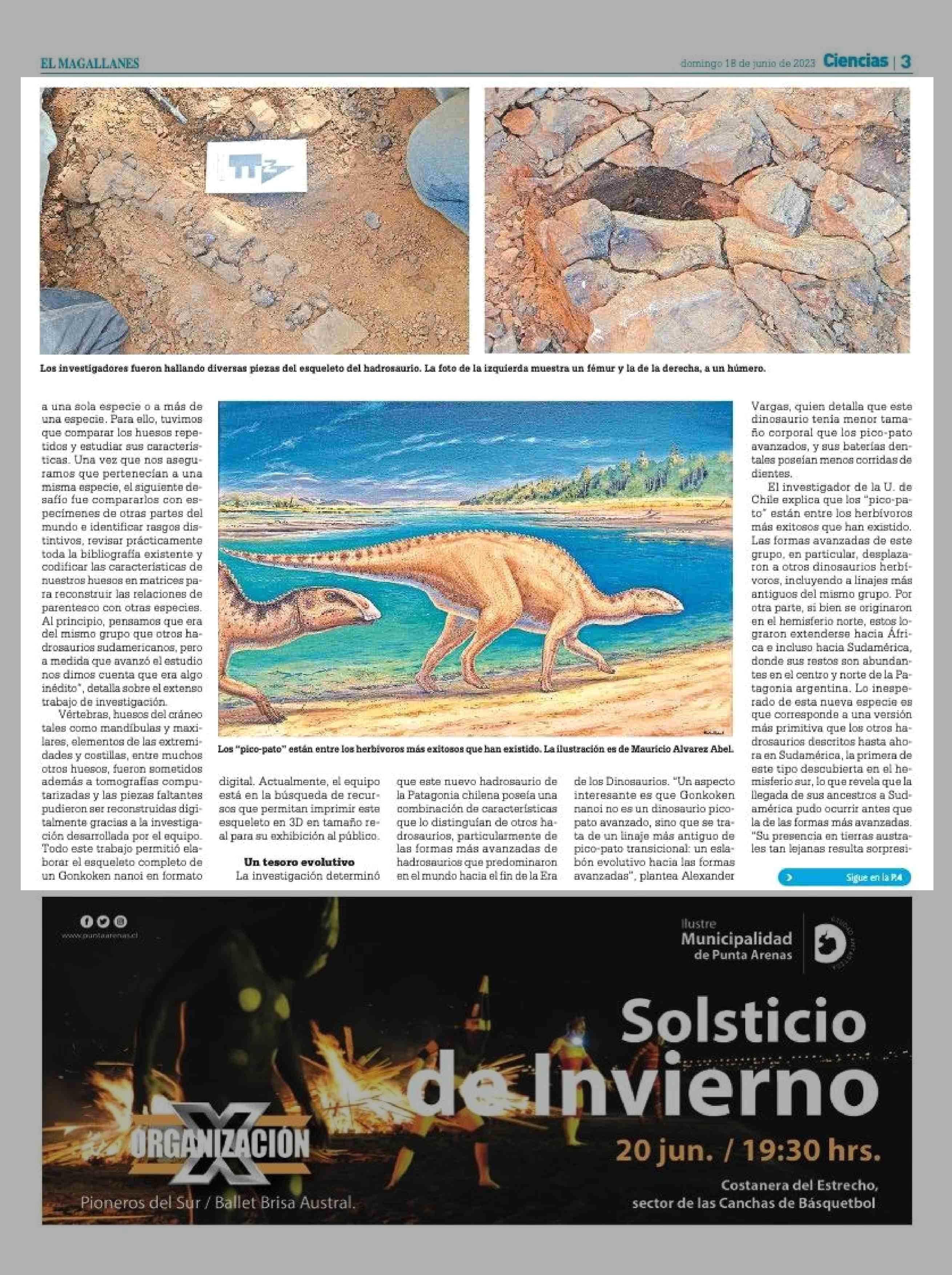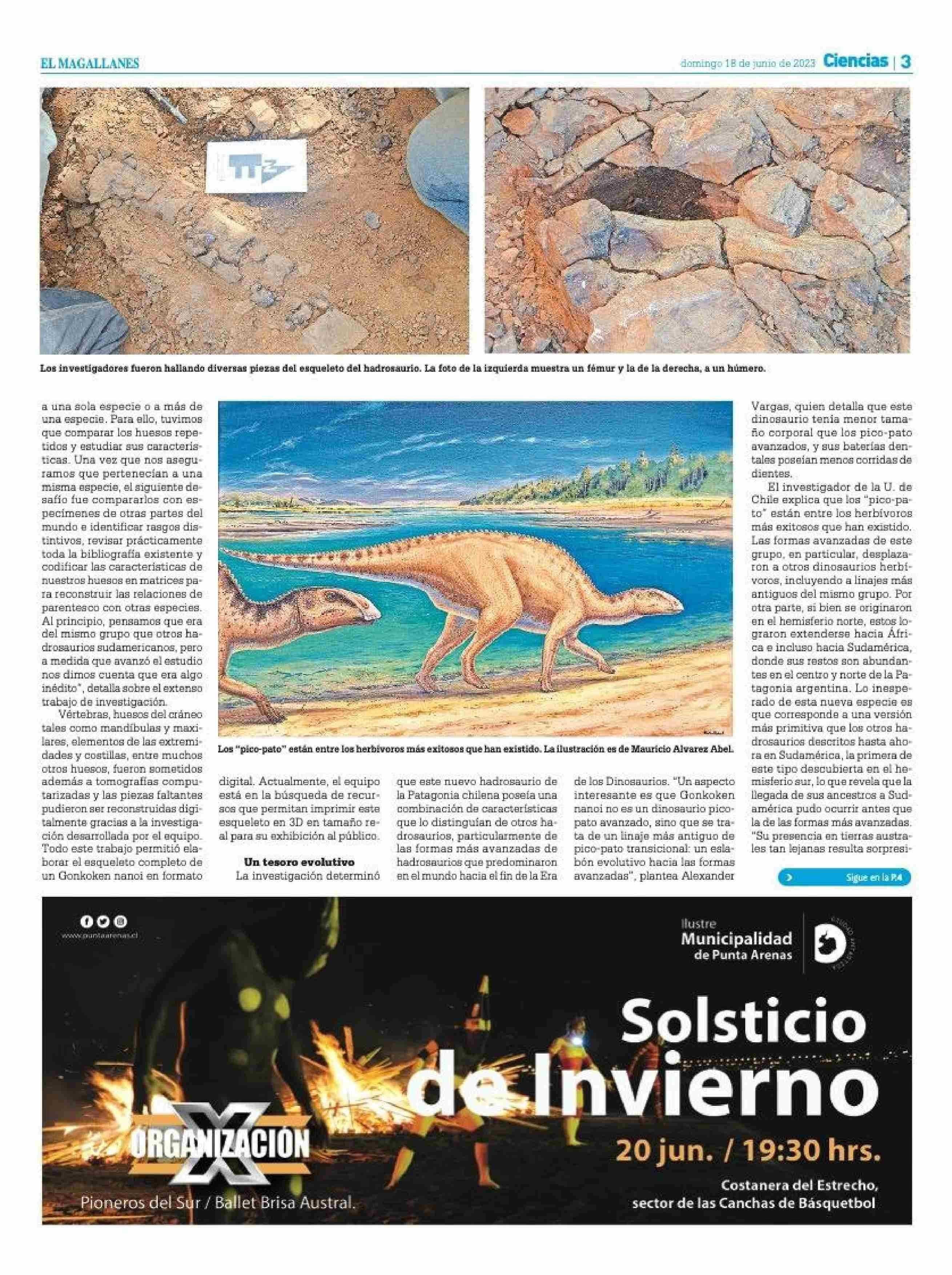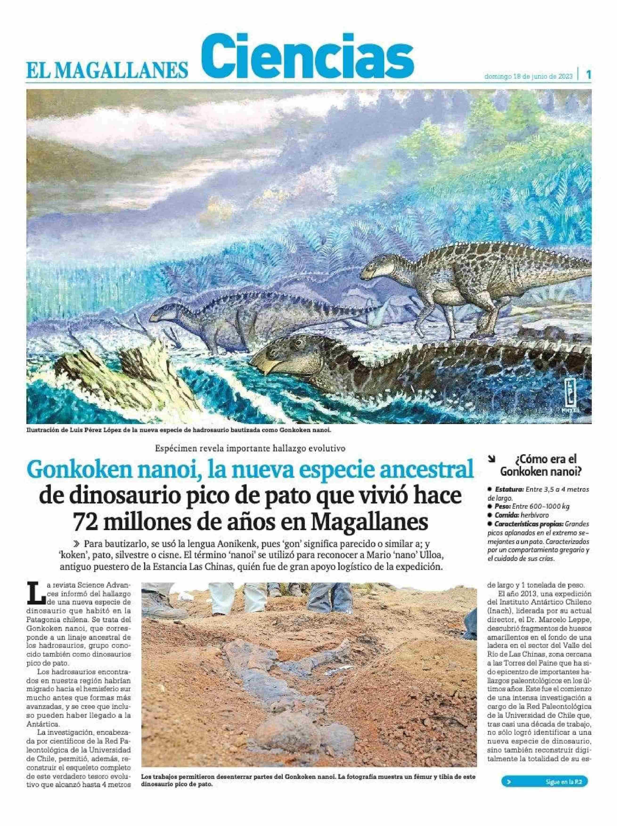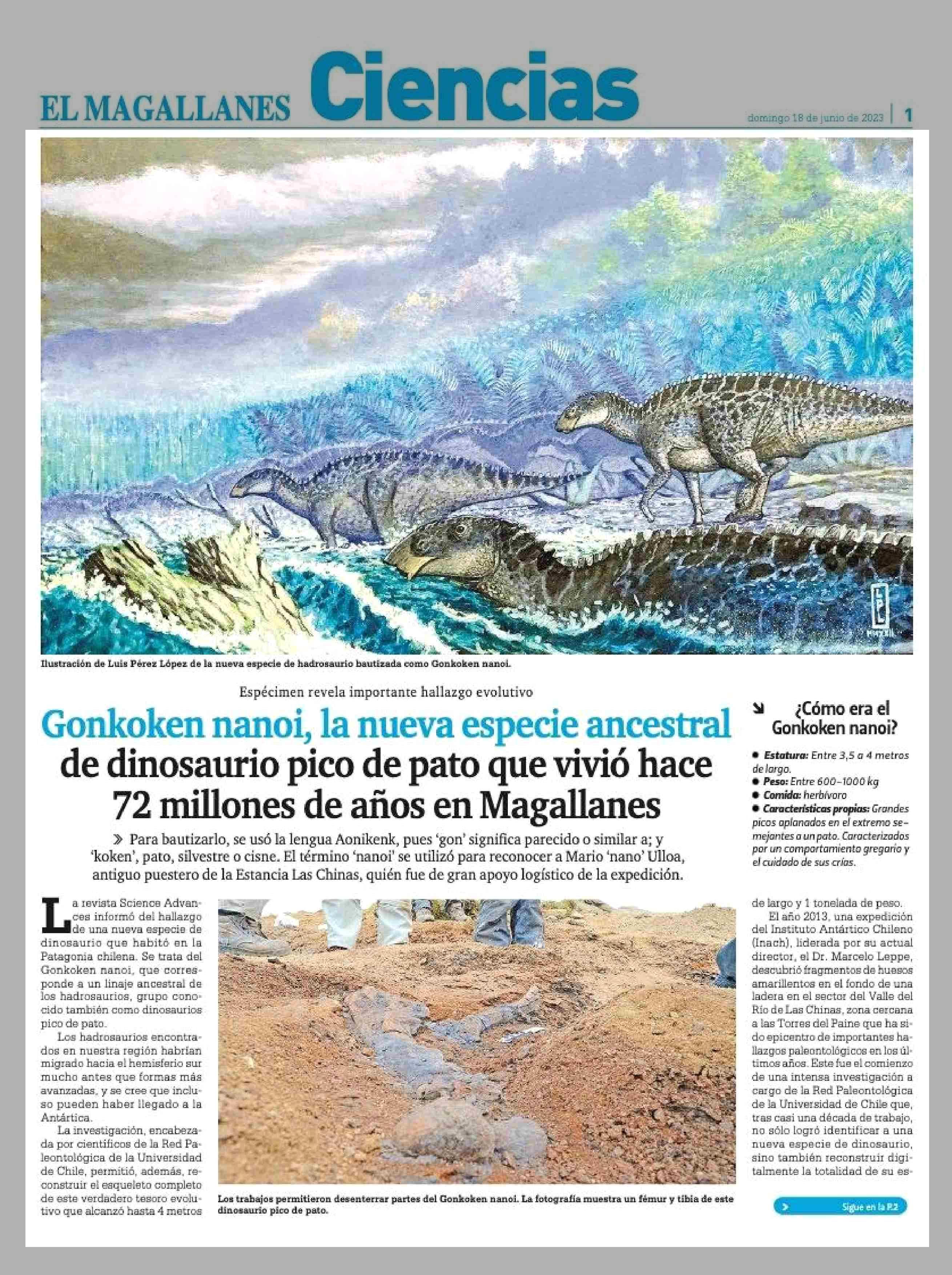 Gonkoken nanoi, la nueva especie ancestral de dinosaurio pico de pato que vivió hace 72 millones de años en Magallanes 18-06-2023 El Magallanes |
