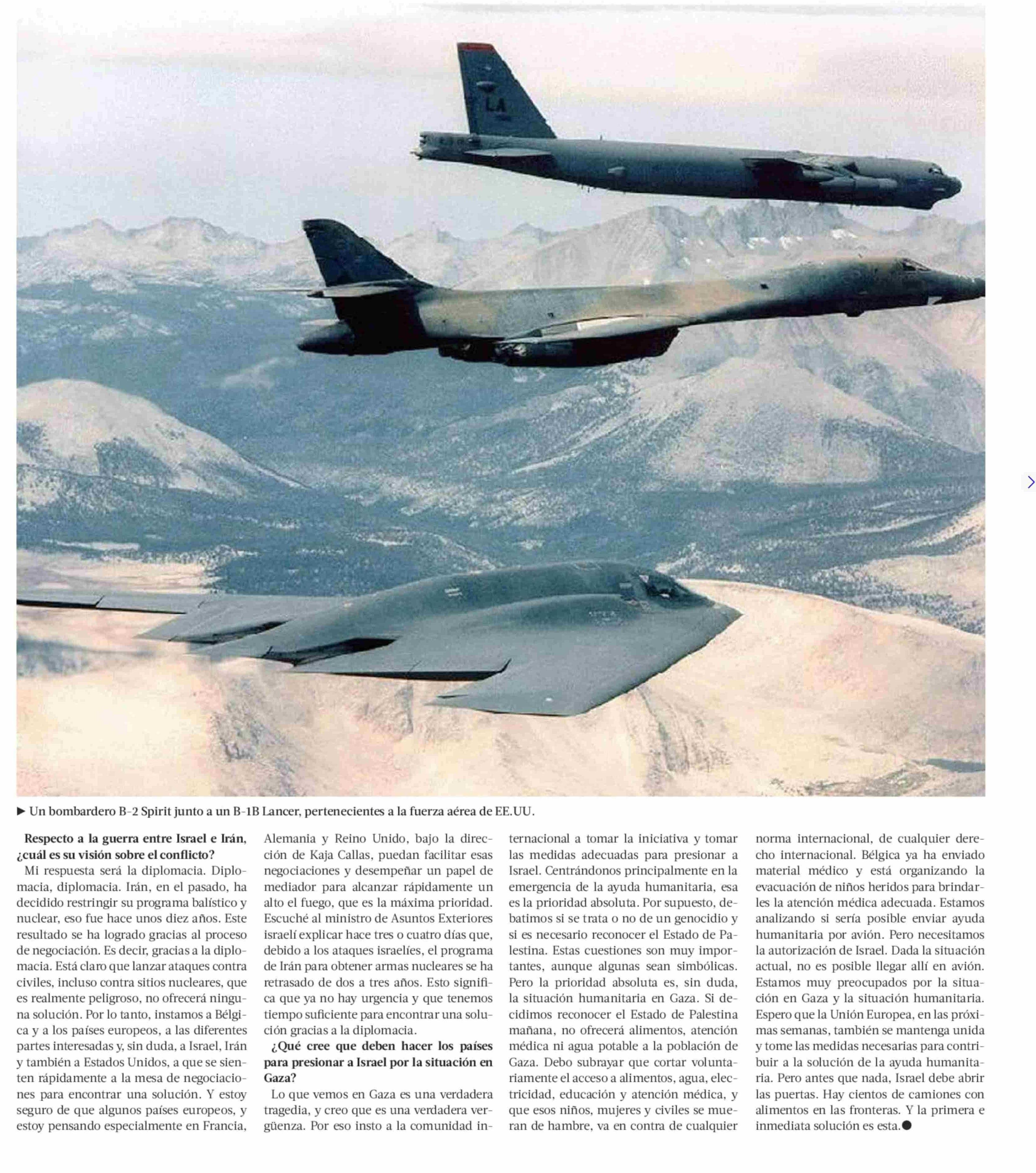 Vicepremier y canciller de Bélgica, sobre aumento en gasto en defensa: “Es una inversión para la paz, no para la guerra” 26-06-2025 La Tercera |