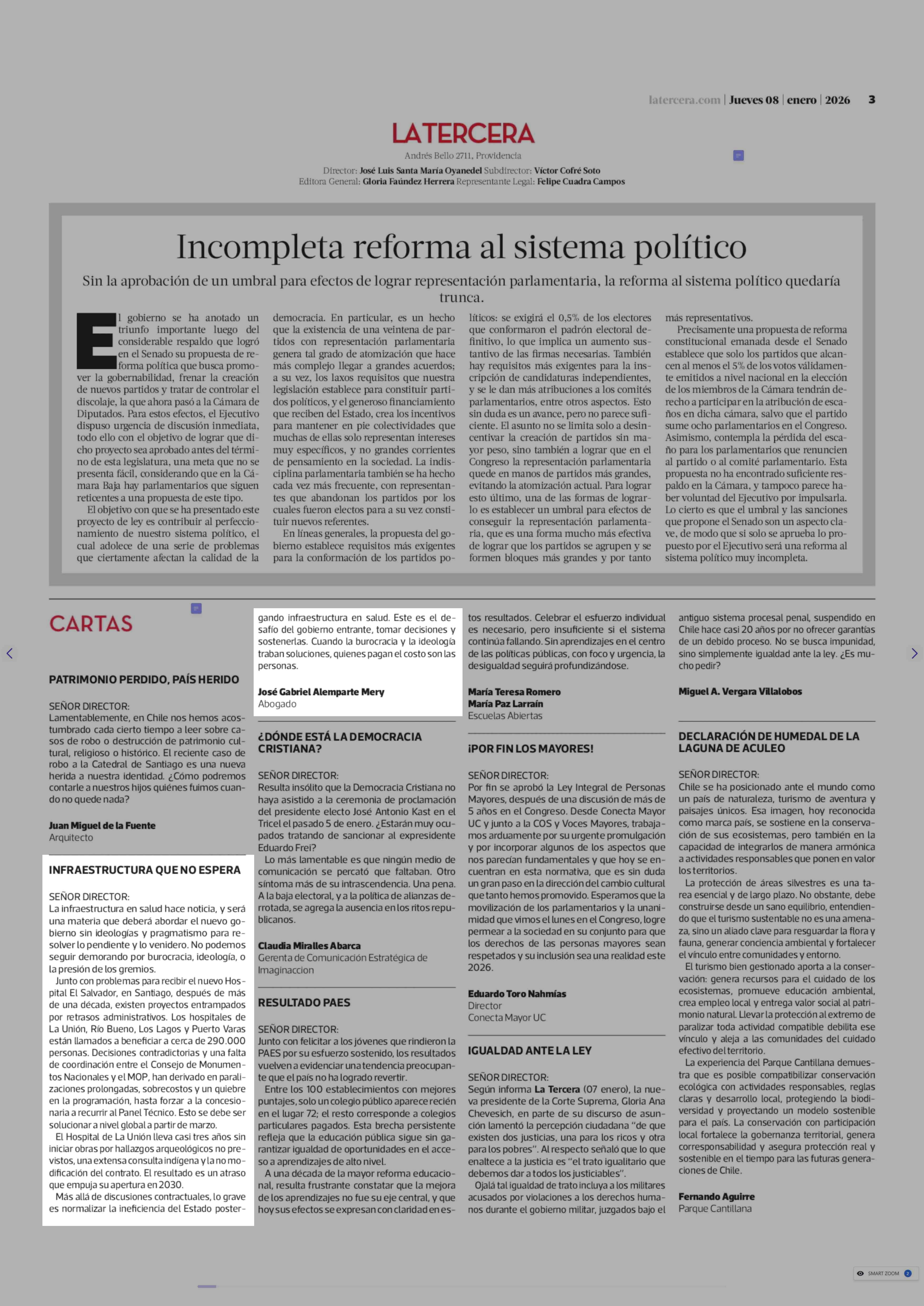 Fecha: 08-01-2026 Sector: Opinión - Cartas Región: Región Metropolitana de Santiago
