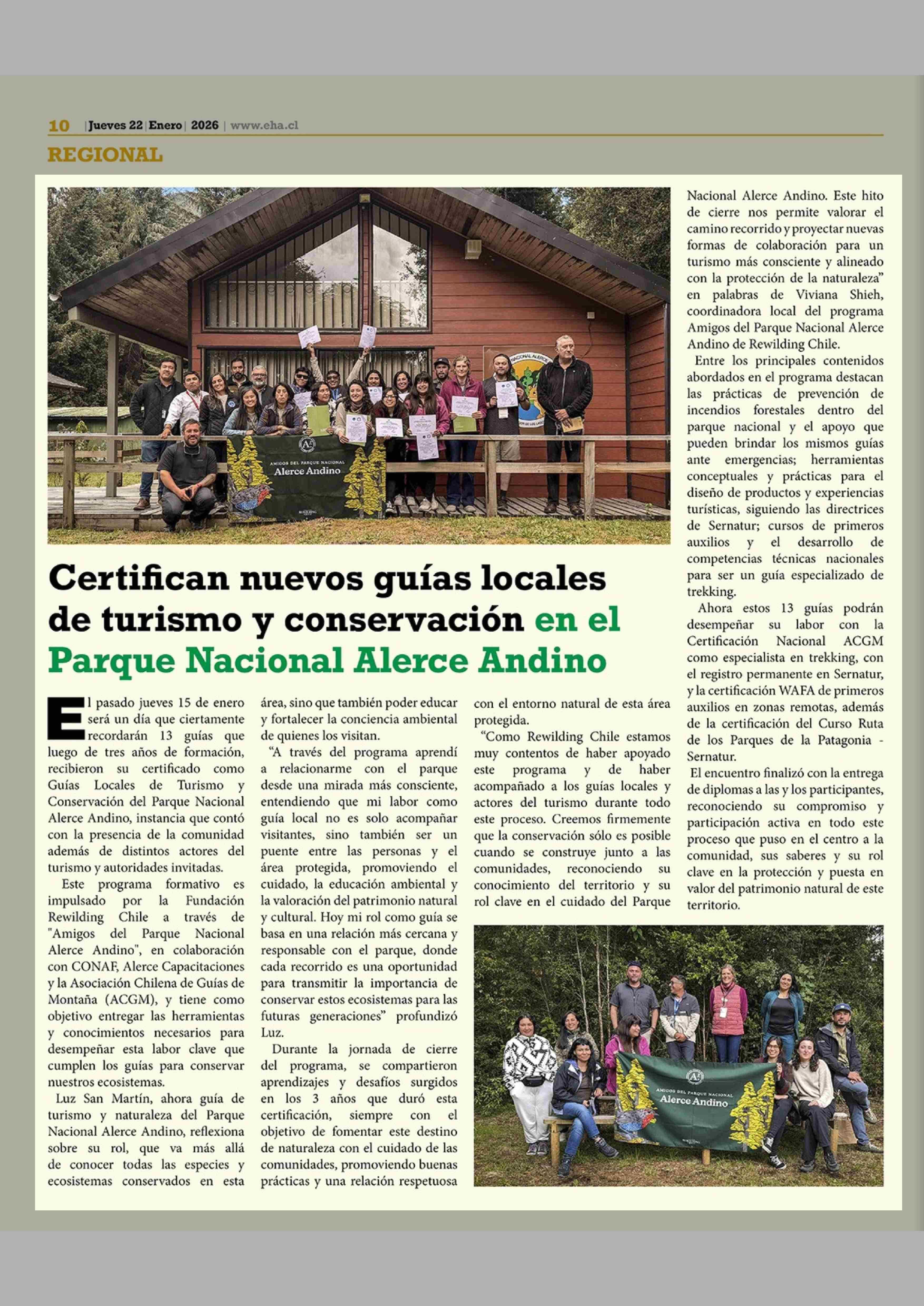 Título: Certifican nuevos guías locales de turismo y conservación en el Parque Nacional Alerce Andino