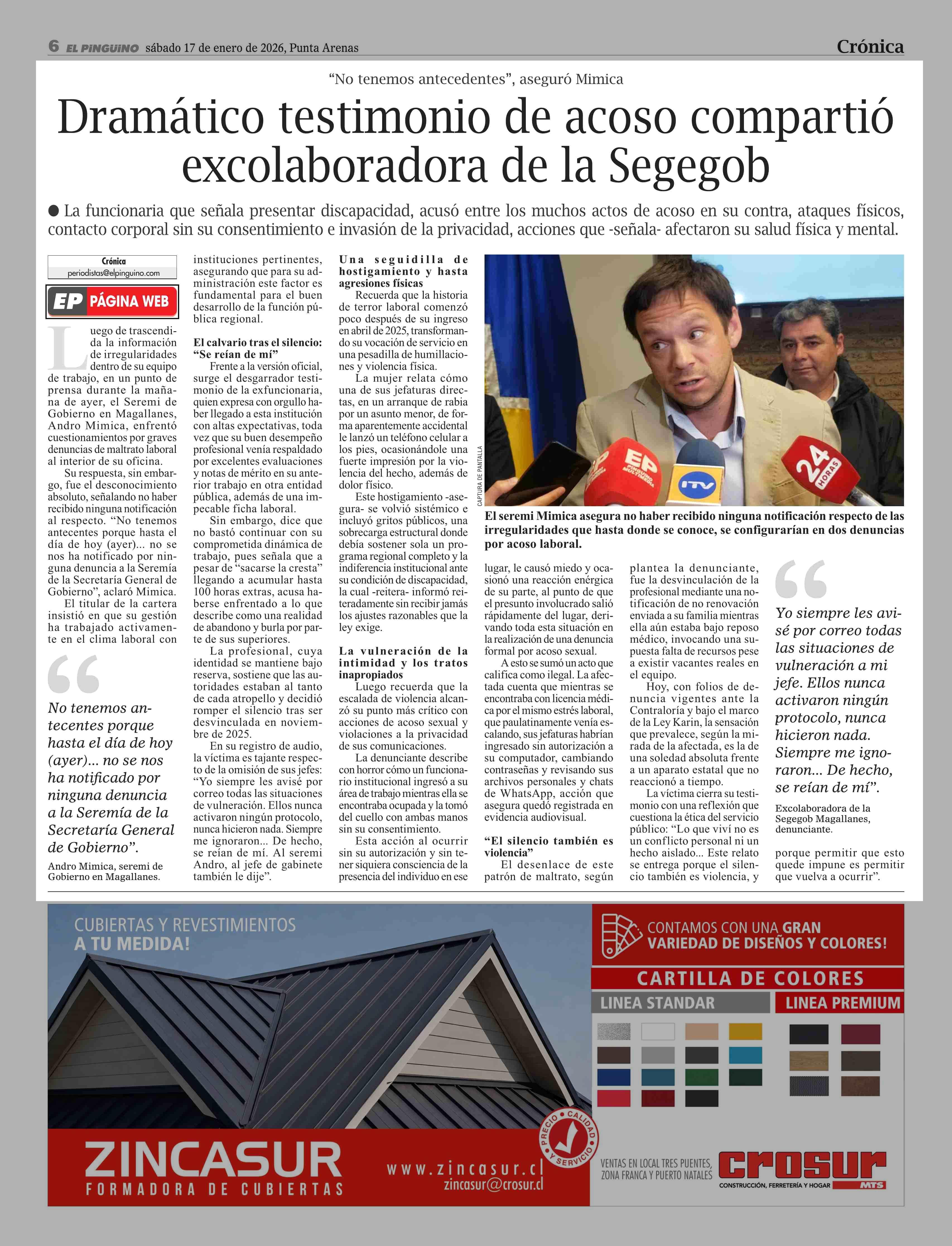 Dramático testimonio de acoso compartió excolaboradora de la Segegob 17-01-2026 El Pingüino |