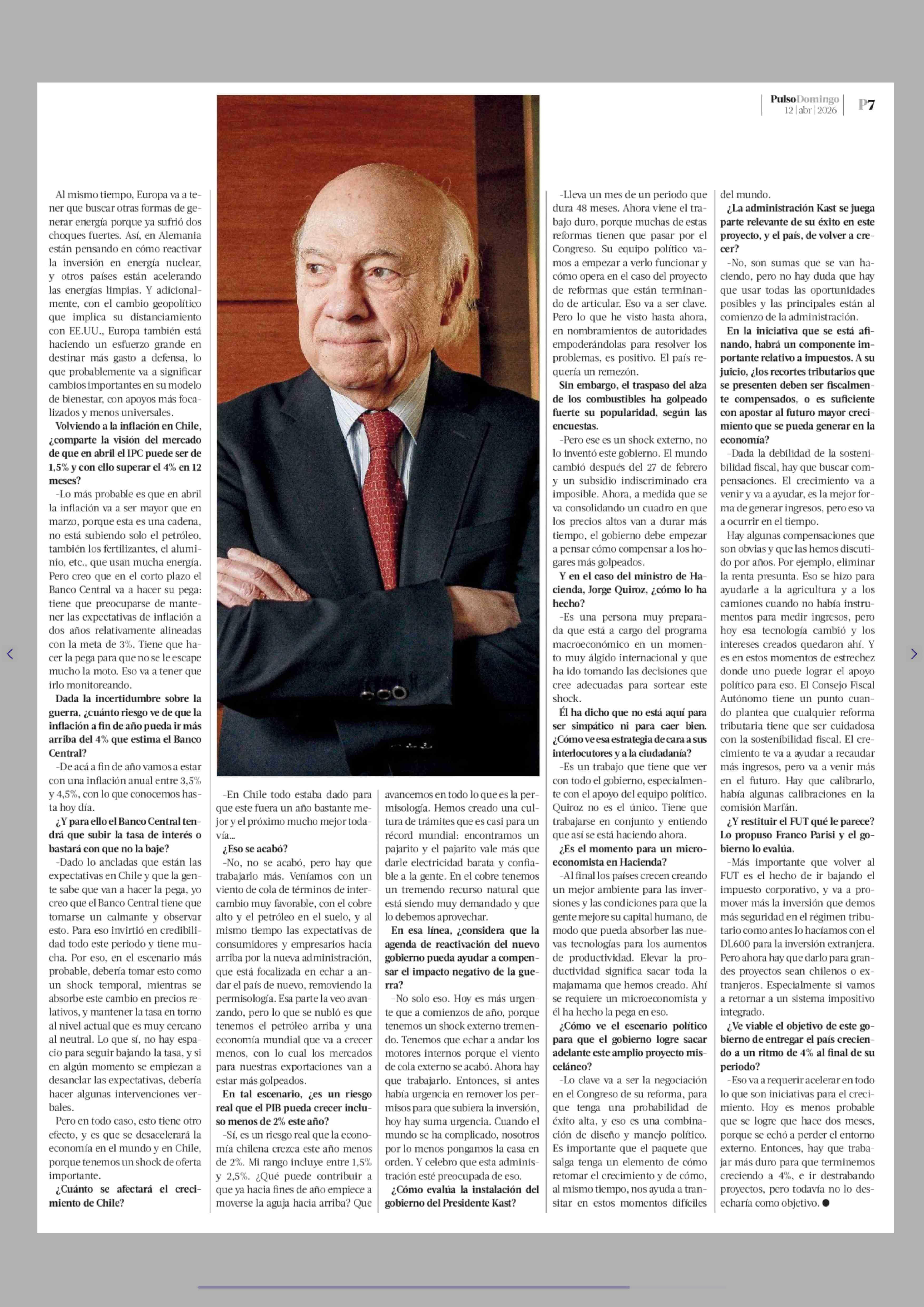 VITTORIO CORBO "Tenemos que echar a andar los motores internos porque el viento de cola externo se acabó" 12-04-2026 La Tercera |