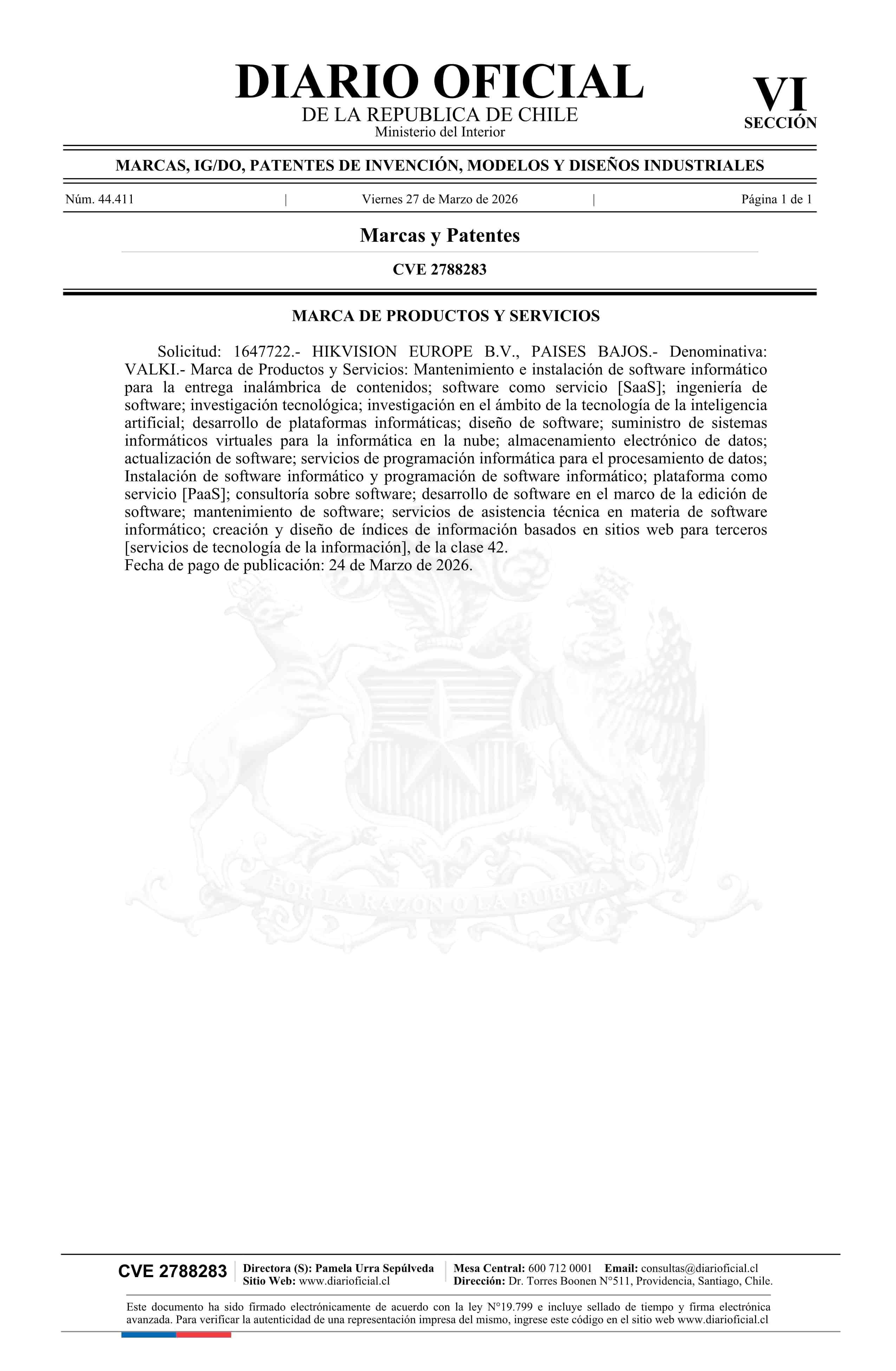 Fuente: Diario Oficial Edición Electrónica (Diario Oficial de Chile - 6 Marcas Y Patentes) Página(s): 32