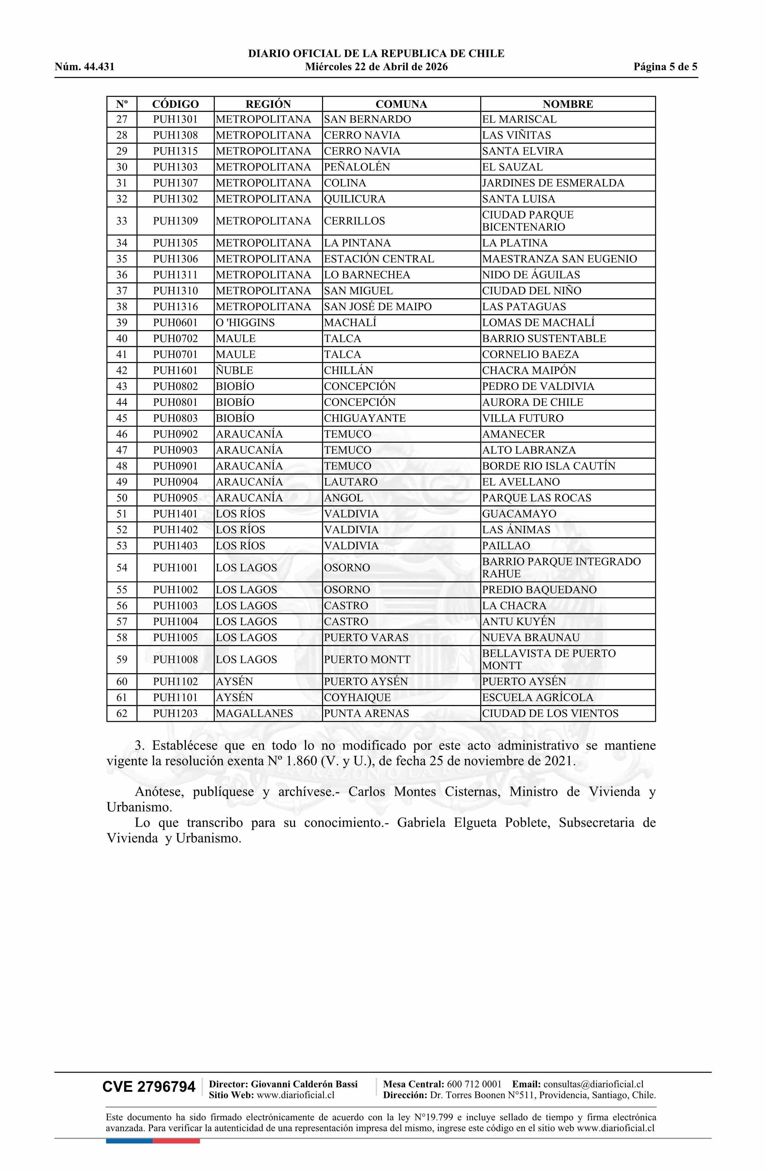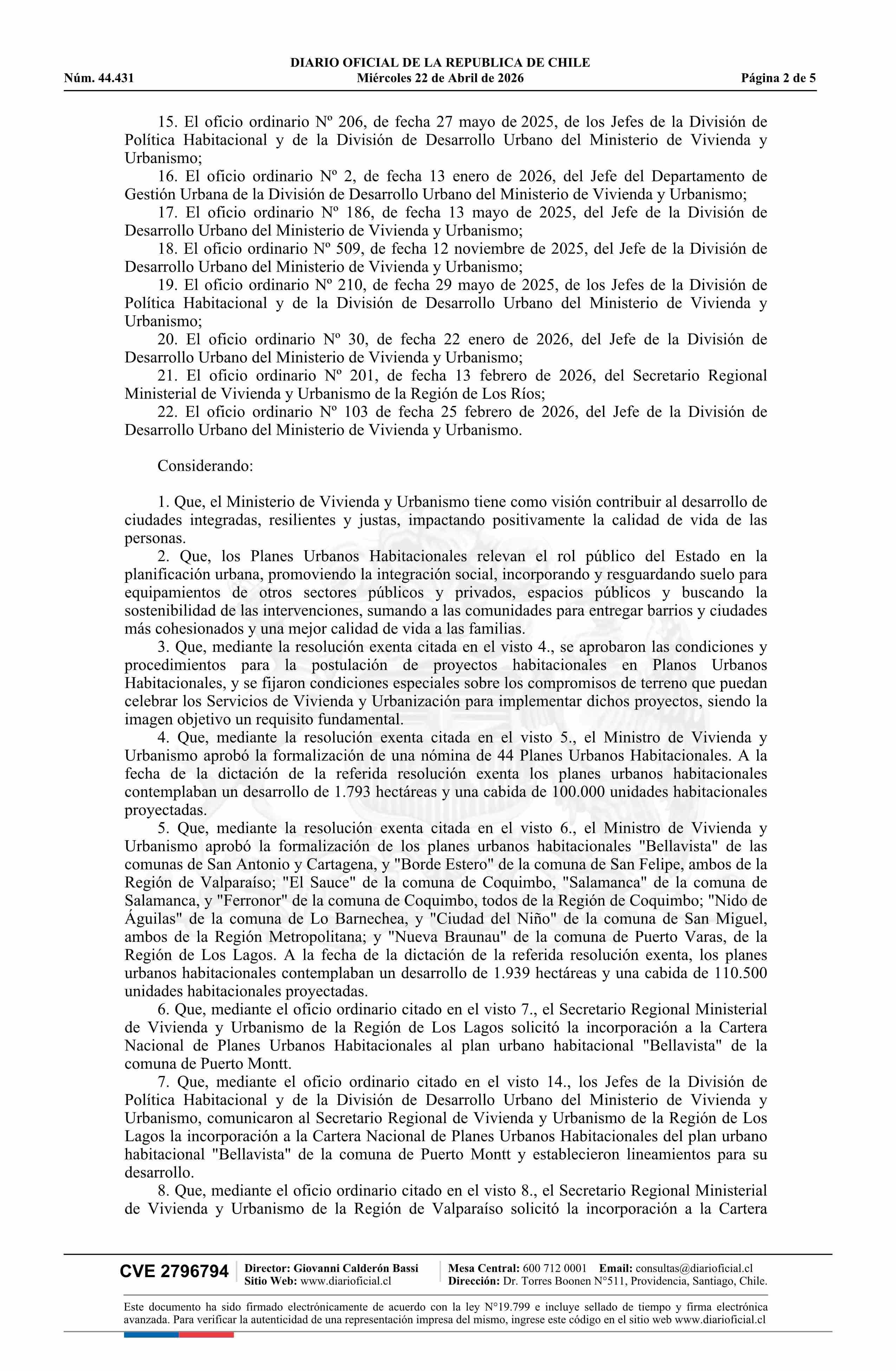 | Título: | Resolución exenta número 380, de 2026.- Aprueba nómina de planes urbanos habitacionales que indica y modifica resolución Nº 1.860 exenta, de 2021, que aprueba nómina de planes urbanos habitacionales e imágenes objetivos desarrollados por las Secretarías Regionales Ministeriales de Vivienda y Urbanis |
