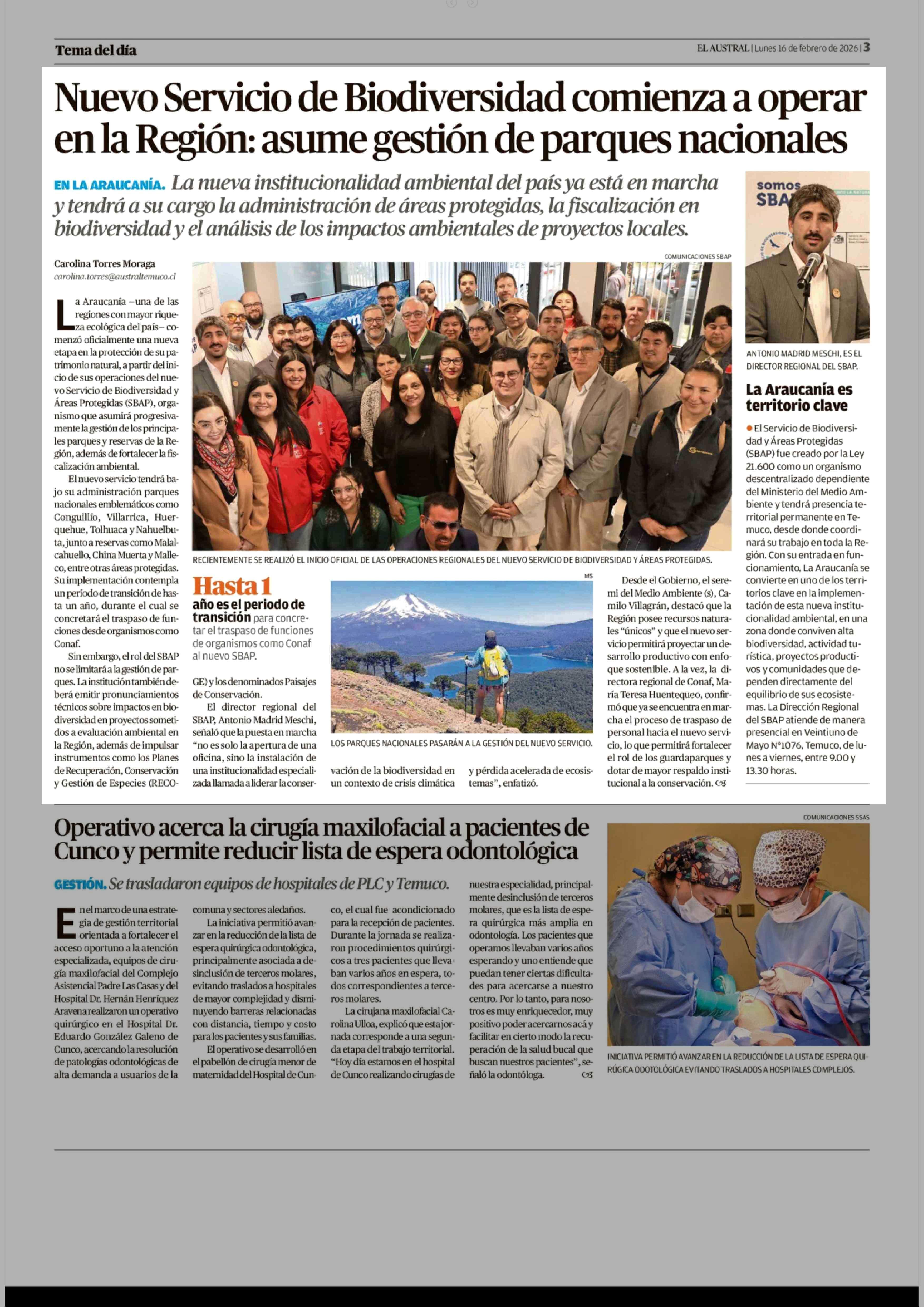 Nuevo Servicio de Biodiversidad comienza a operar en la Región: asume gestión de parques nacionales 16-02-2026 El Austral de la Araucanía |