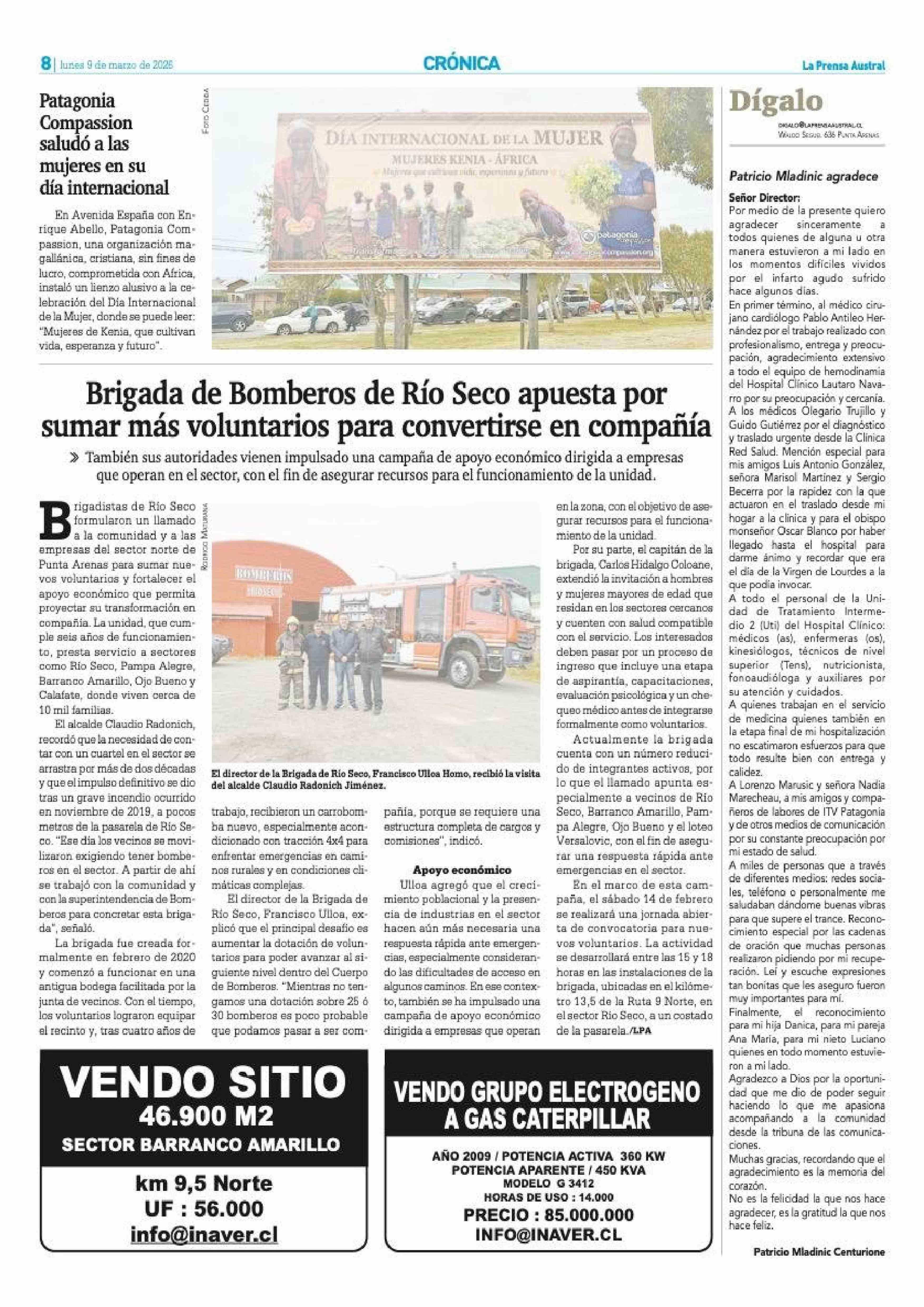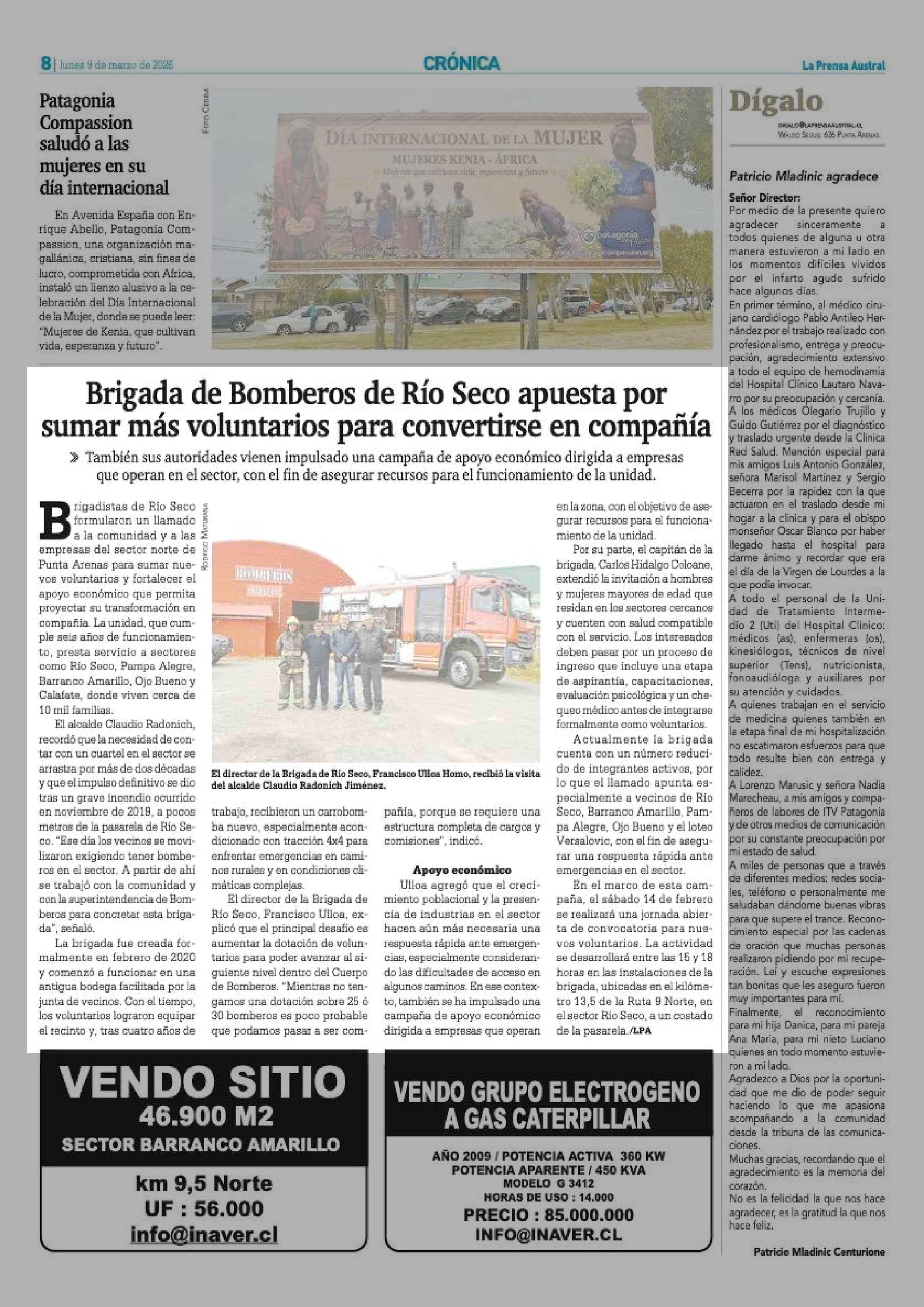 Brigada de Bomberos de Río Seco apuesta por sumar más voluntarios para convertirse en compañía 09-03-2026 La Prensa Austral |