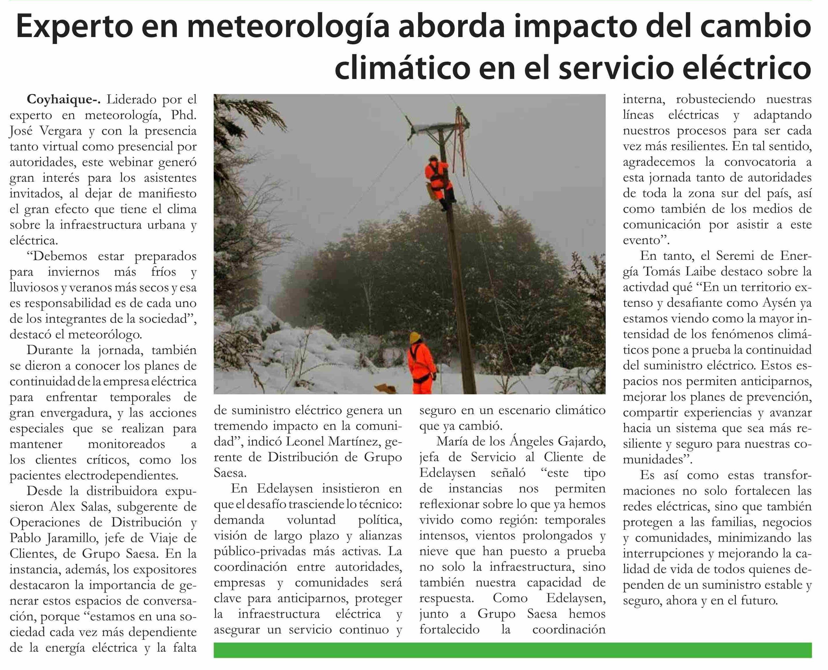 Experto en meteorología aborda impacto del cambio climático en el servicio eléctrico 21-06-2025 El Divisadero |