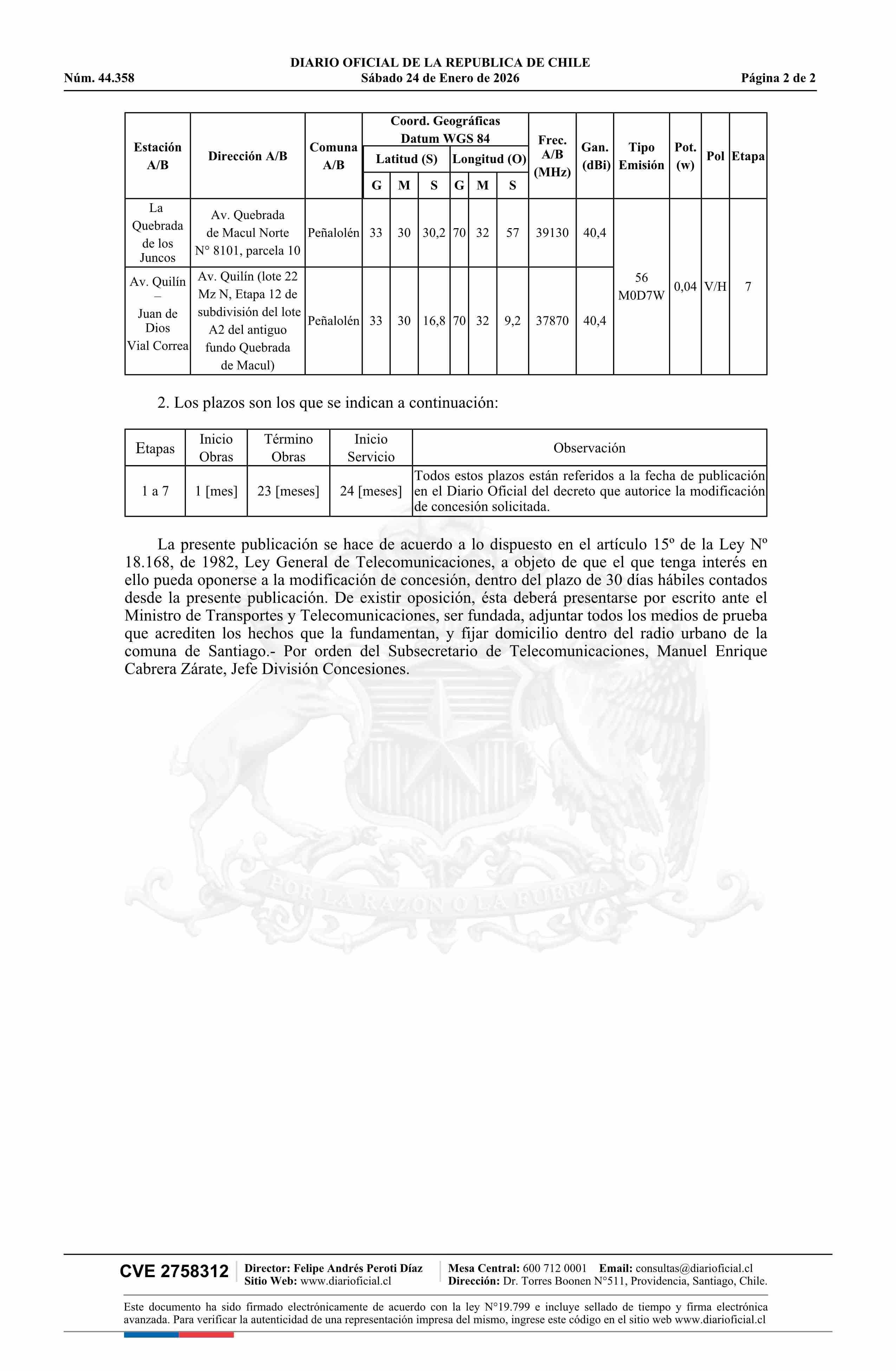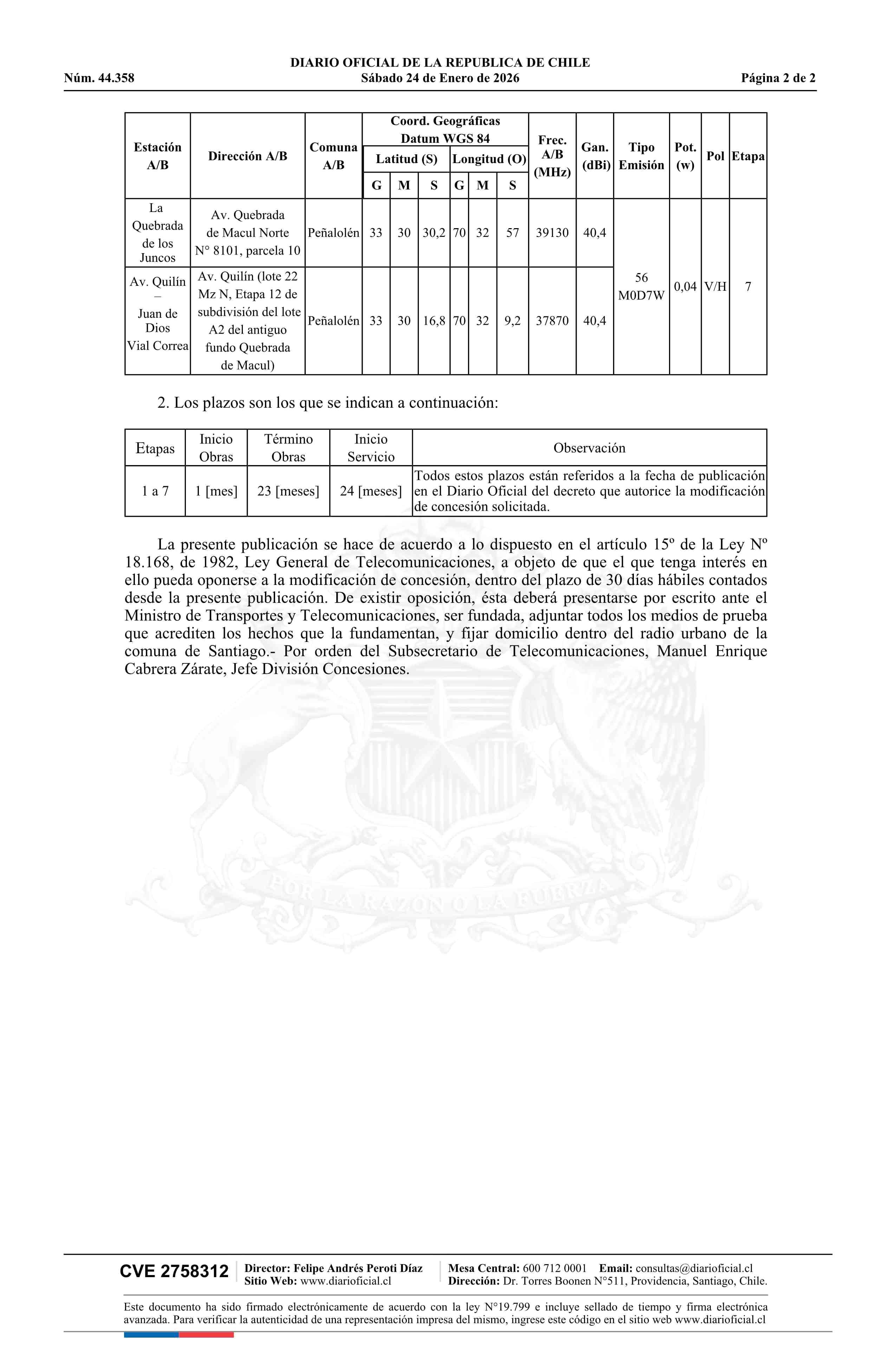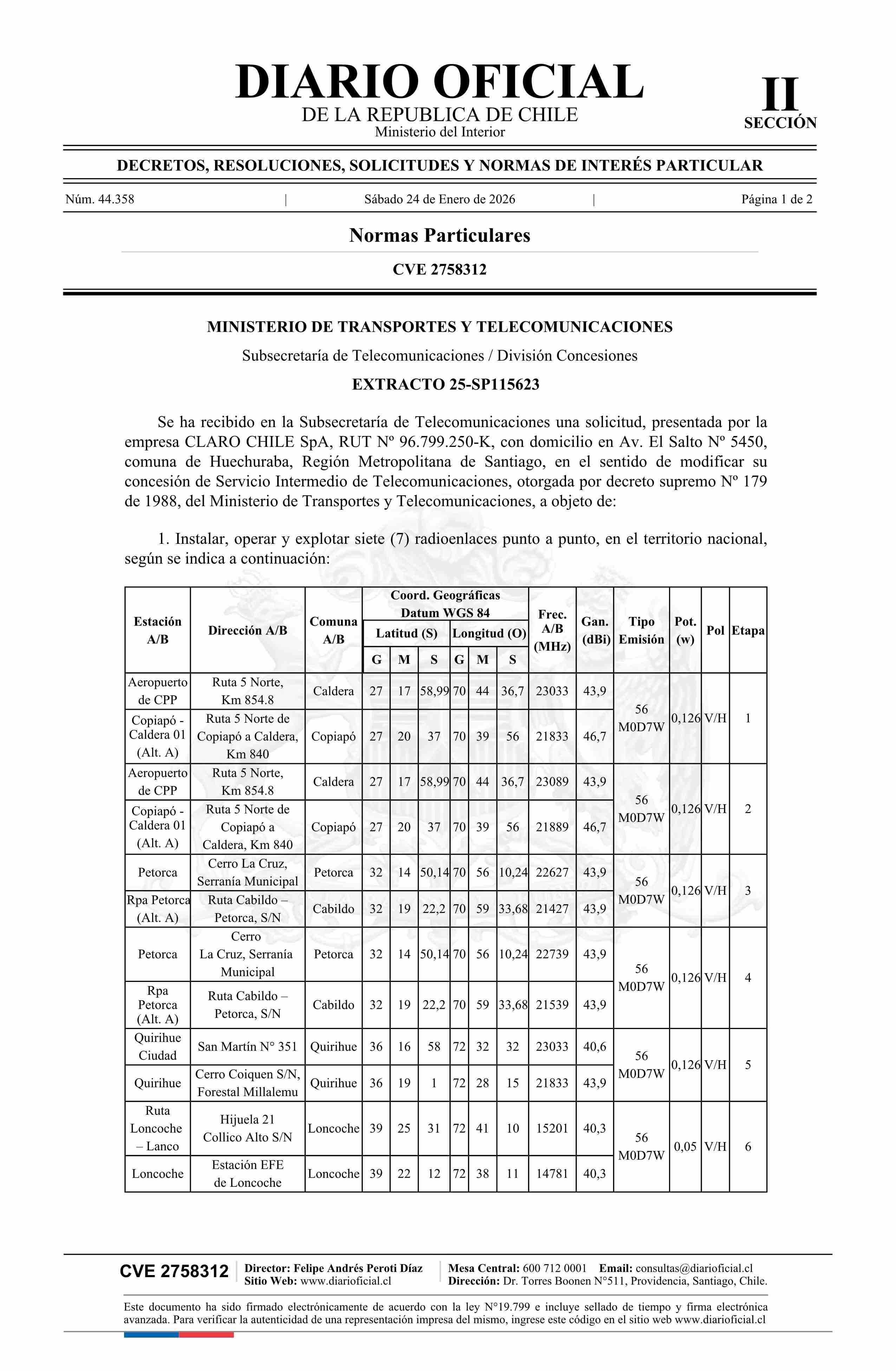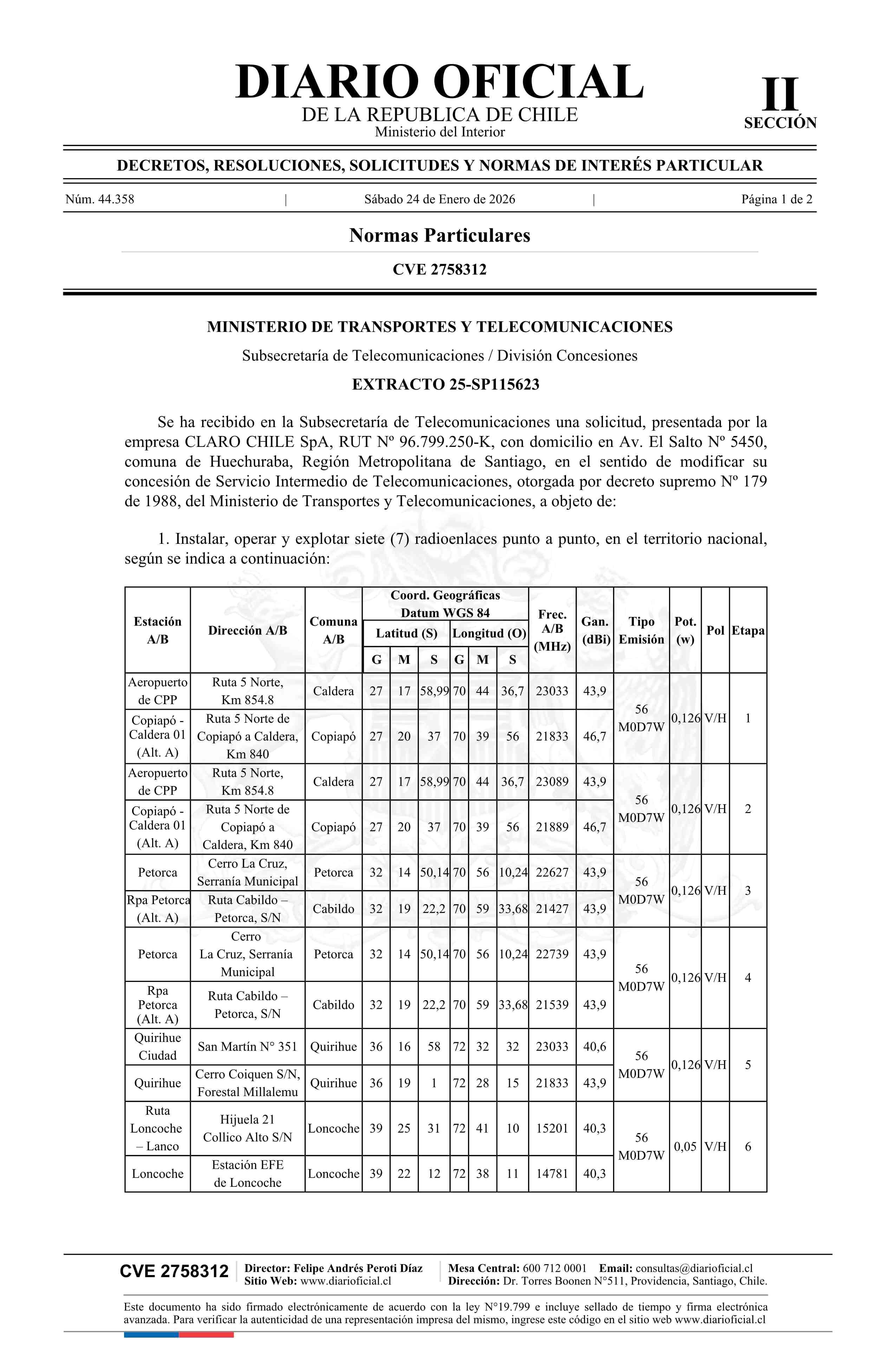 Solicitud número 25-SP115623.- Claro Chile SpA 24-01-2026 Diario Oficial Edición Electrónica |