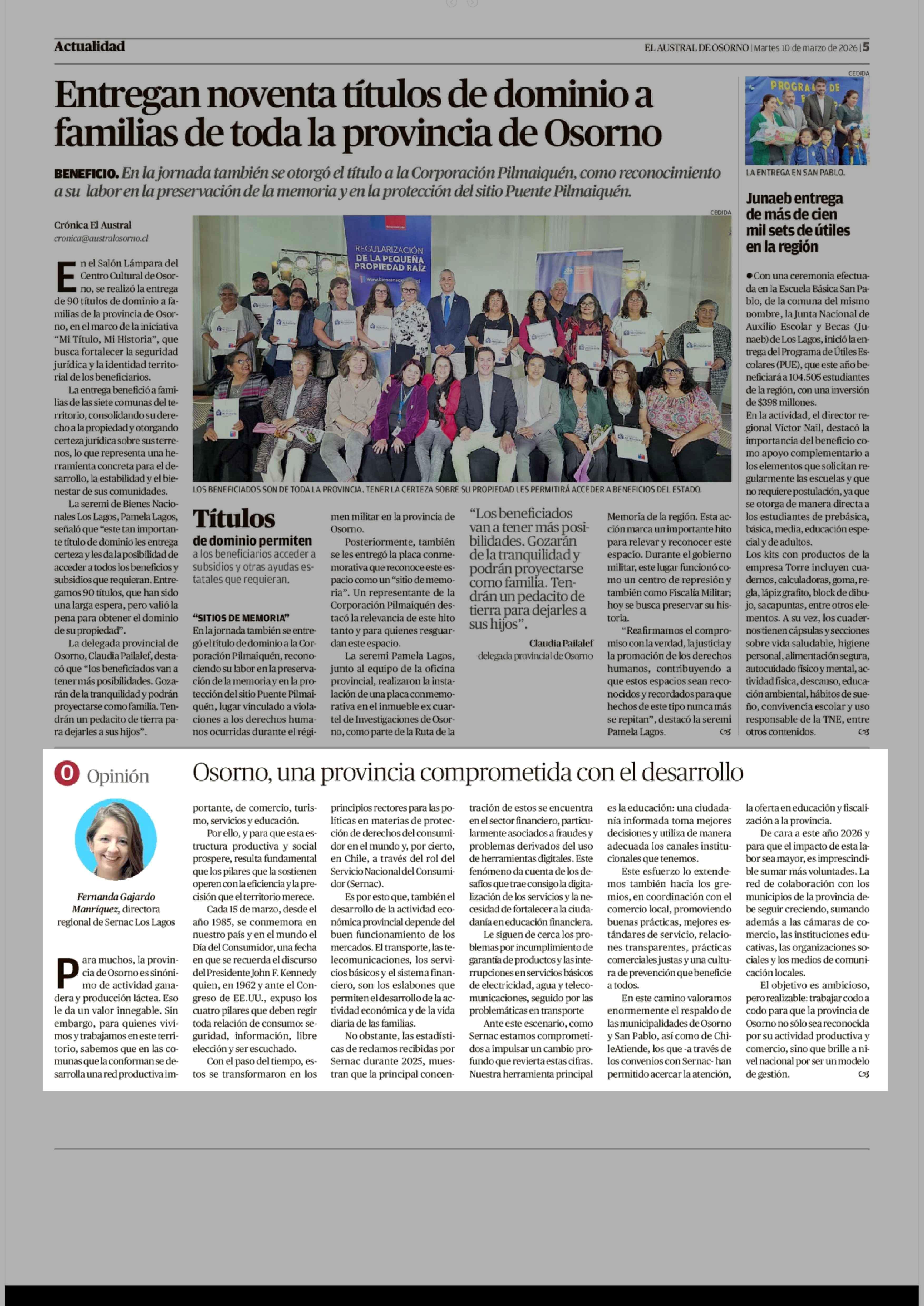 Columnas de Opinión: Osorno, una provincia comprometida con el desarrollo 10-03-2026 El Austral de Osorno |