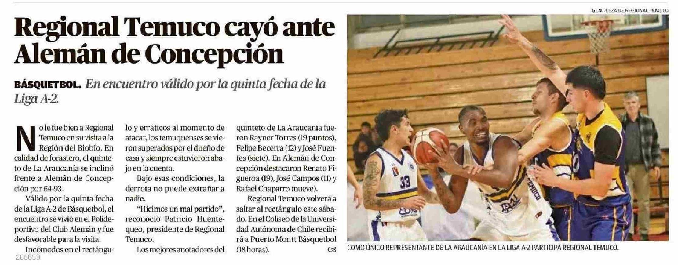 Regional Temuco cayó ante Alemán de Concepción 29-04-2025 El Austral de la Araucanía |