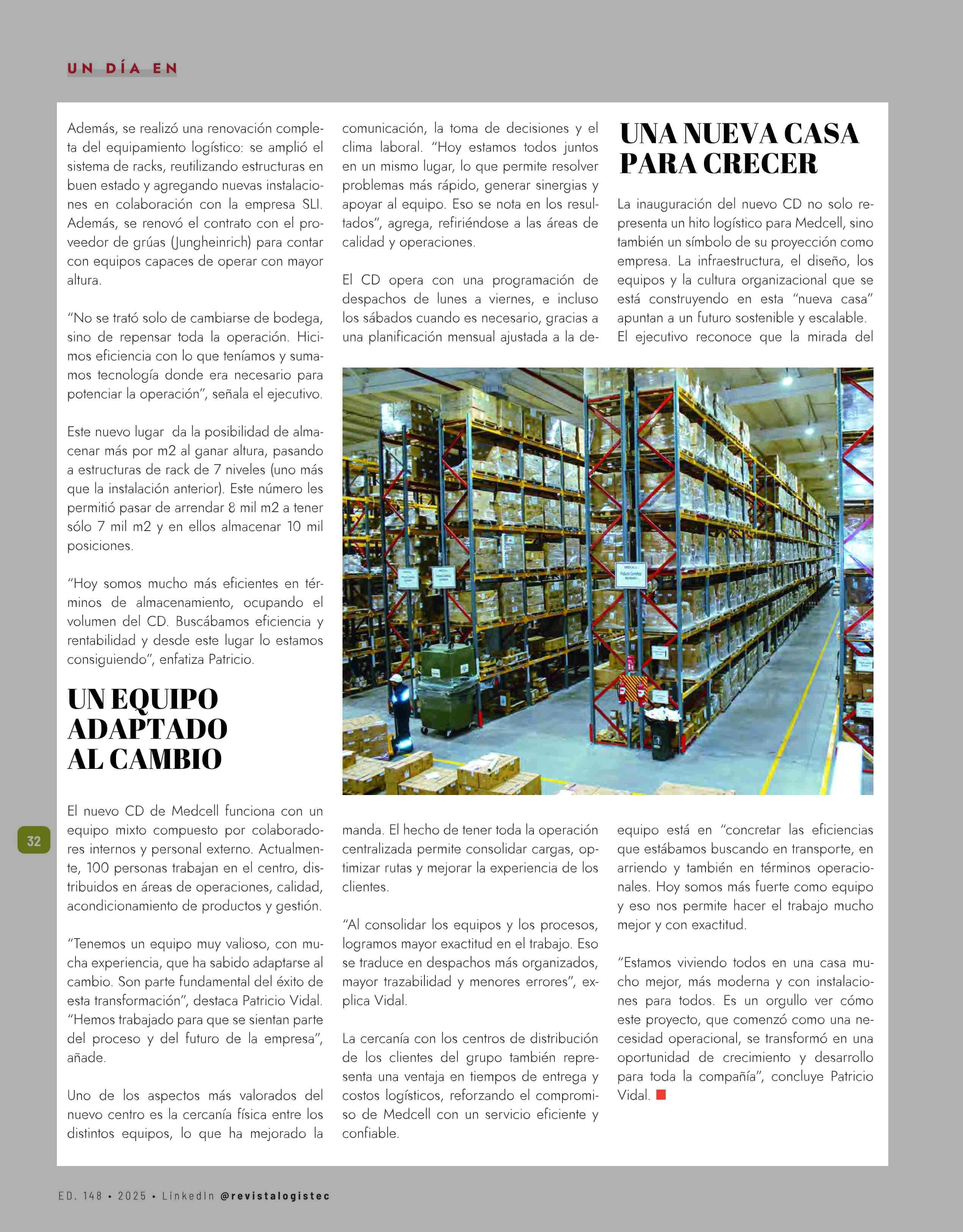 MEDCELL: EFICIENCIA LOGISTICA DESDE UN NUEVO CENTRO DE DISTRIBUCION 17-06-2025 Revista Logistec |