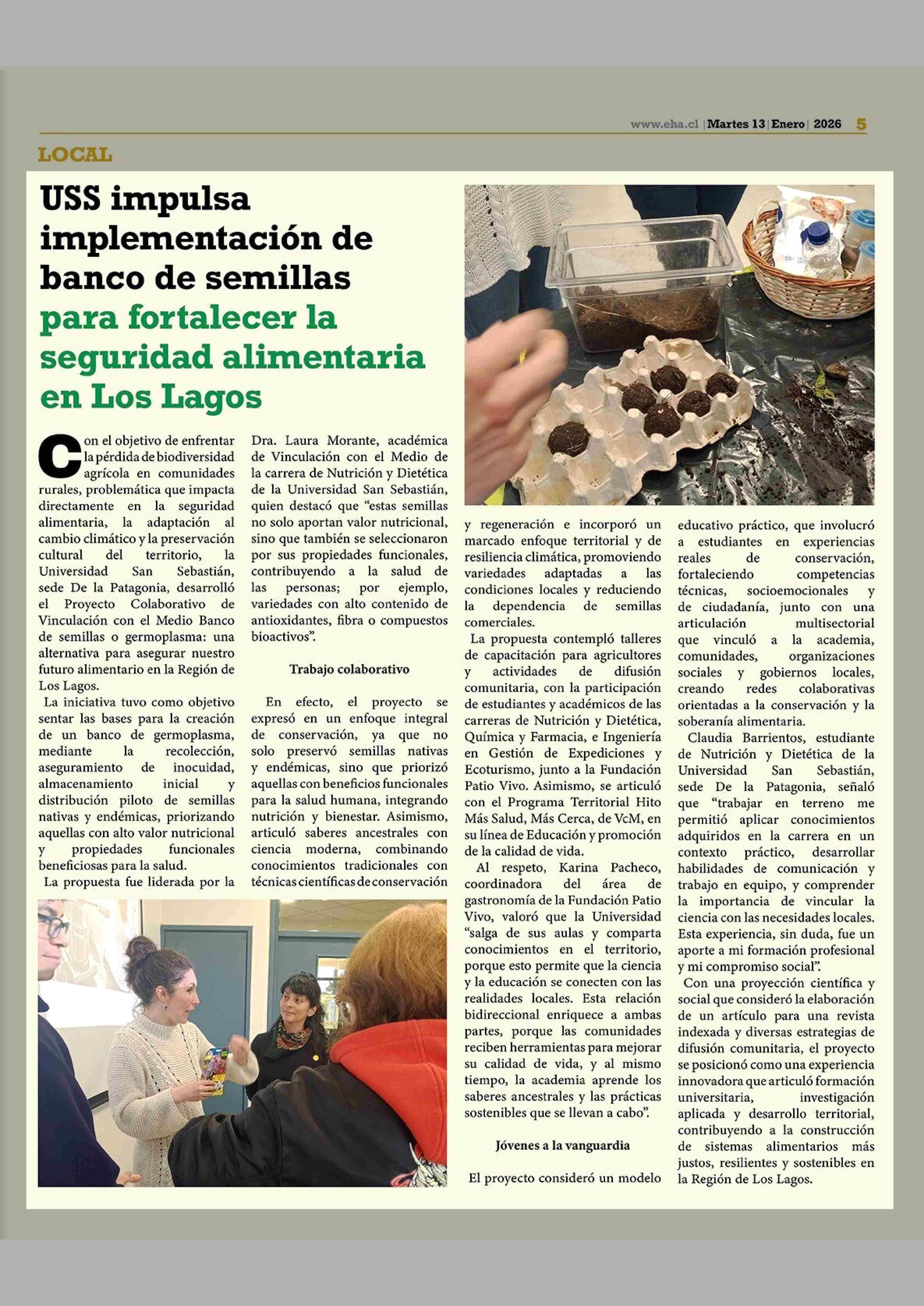 USS impulsa implementación de banco de semillas para fortalecer la seguridad alimentaria en Los Lagos 13-01-2026 El Heraldo Austral |