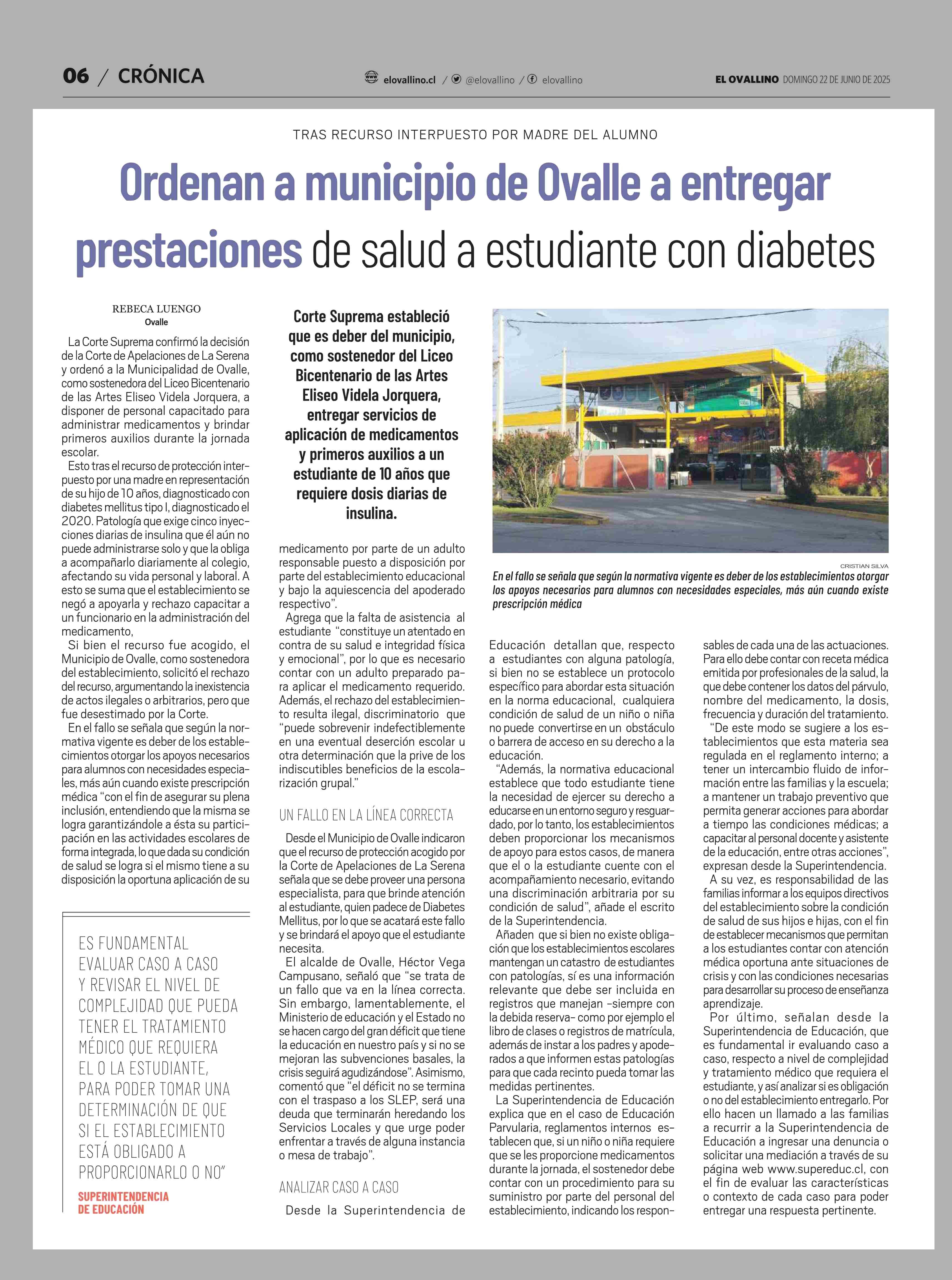 Título: Ordenan a municipio de Ovalle a entregar prestaciones de salud a estudiante con diabetes